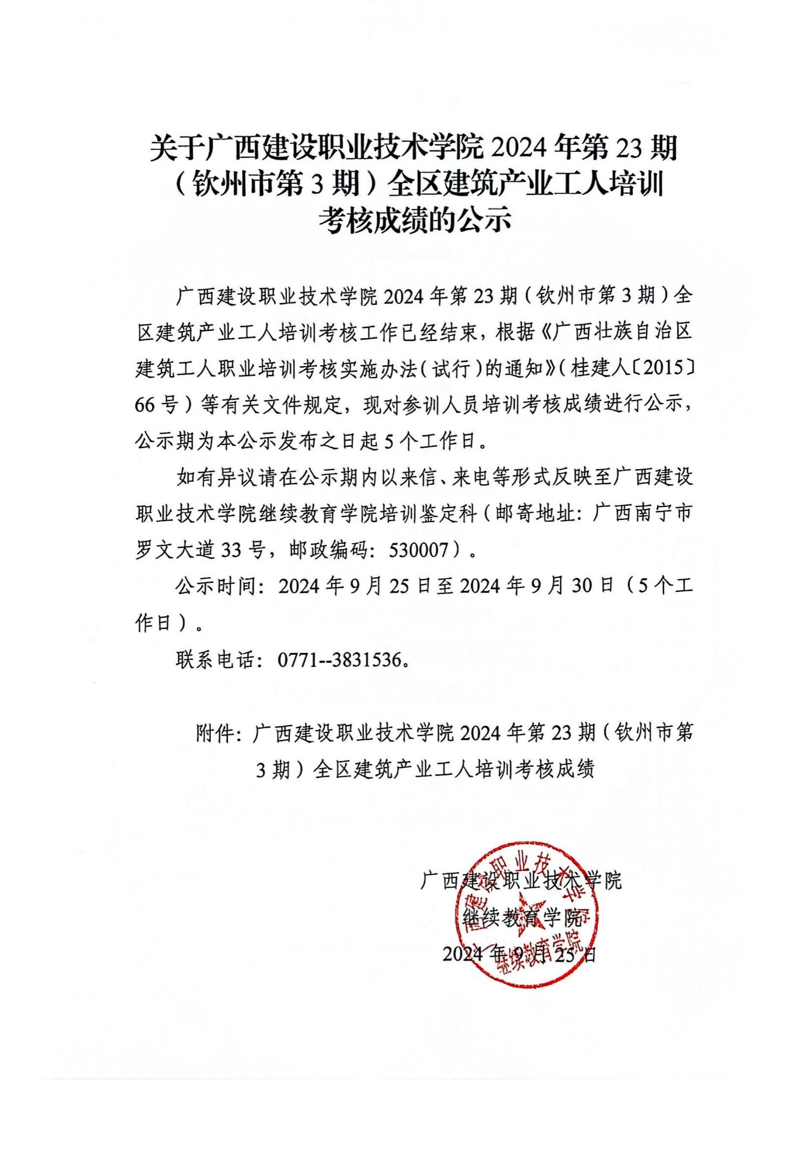 培训信息 当前位置: 首页 >> 培训信息 >> 正文 关于雷速在线网站2024年第23期(钦州市第3期)全区雷速在线网站产业工人培训考核成绩的公示 发布日期:2024-09-25 点击: 附件【关于雷速在线网站2024年第23期(钦州市第3期)全区雷速在线网站产业工人培训考核成绩的公示.pdf】已下载次