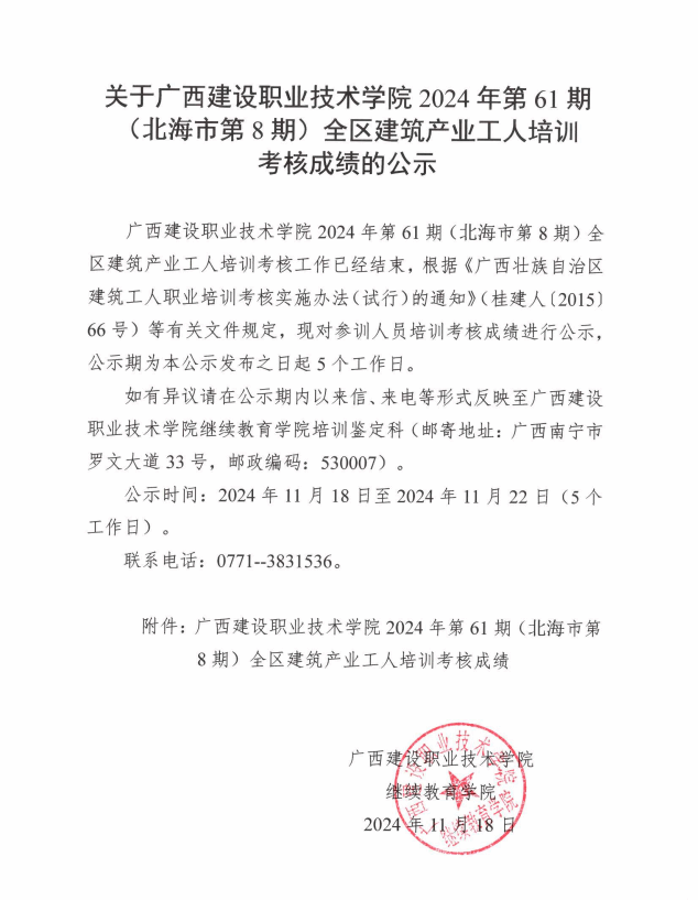 培训信息 当前位置: 首页 >> 培训信息 >> 正文 关于雷速在线网站2024年全区雷速在线网站产业工人第61期(北海市市第8期)培训考核成绩的公示 发布日期:2024-11-18 点击: 附件【关于雷速在线网站2024年全区雷速在线网站产业工人第61期(北海市市第8期)培训考核成绩的公示.pdf】已下载次
