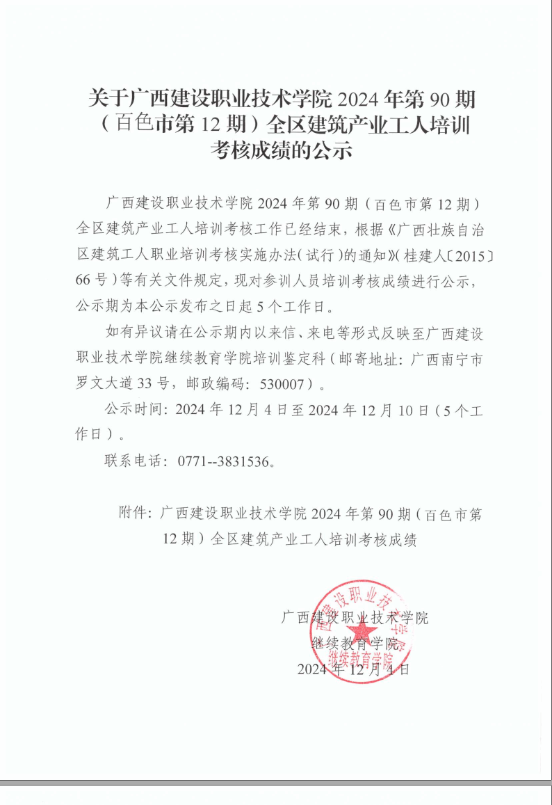培训信息 当前位置: 首页 >> 培训信息 >> 正文 关于雷速在线网站2024年全区雷速在线网站产业工人第90期(百色市第12期)培训考核成绩的公示 发布日期:2024-12-04 点击: 附件【关于雷速在线网站2024年全区雷速在线网站产业工人第90期(百色市第12期)培训考核成绩的公示.pdf】已下载次