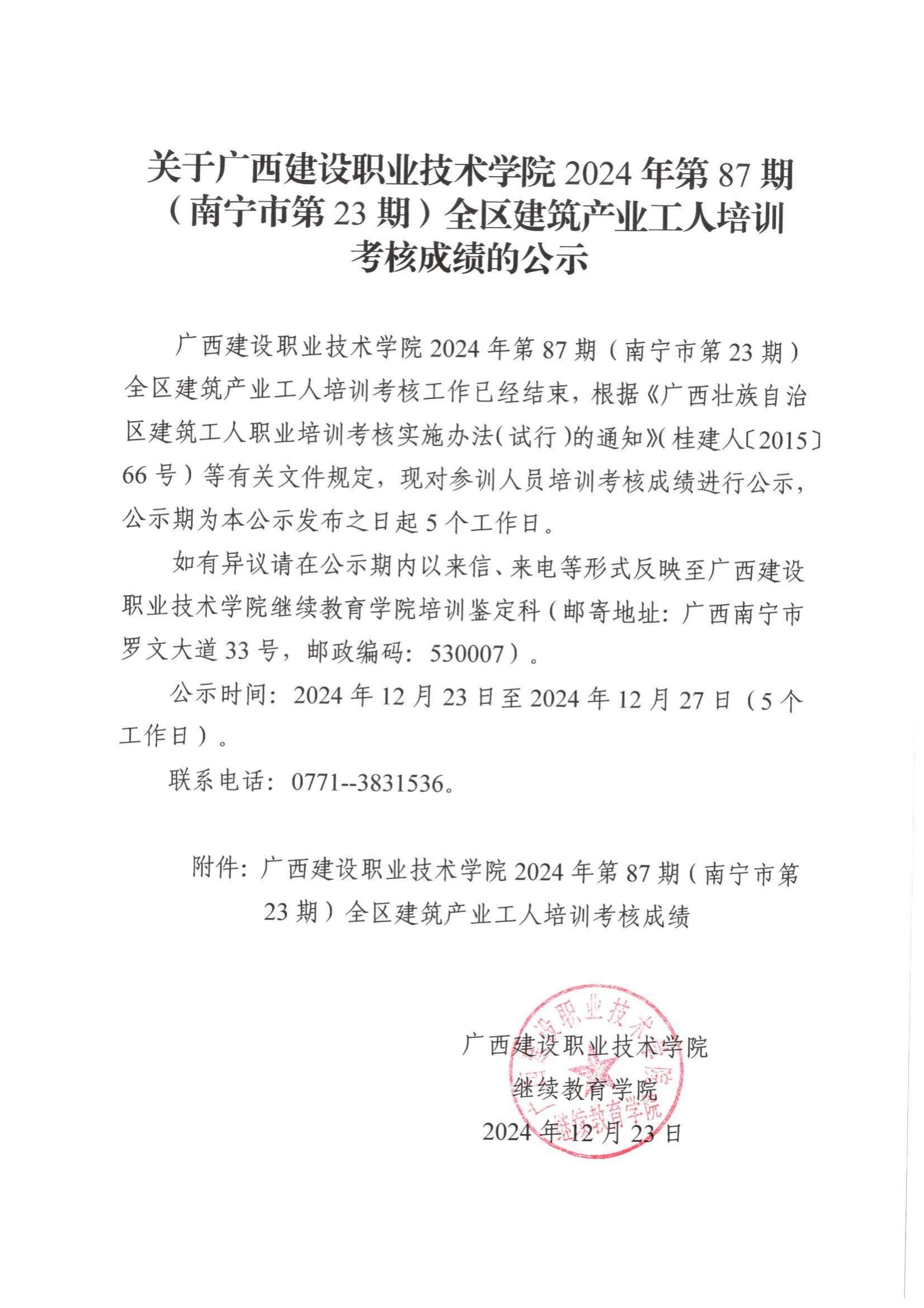 培训信息 当前位置: 首页 >> 培训信息 >> 正文 关于雷速在线网站2024年第87期(南宁市第23期)全区雷速在线网站产业工人培训考核成绩的公示 发布日期:2024-12-24 点击: 附件【关于雷速在线网站2024年第87期(南宁市第23期)全区雷速在线网站产业工人培训考核成绩的公示.pdf】已下载次
