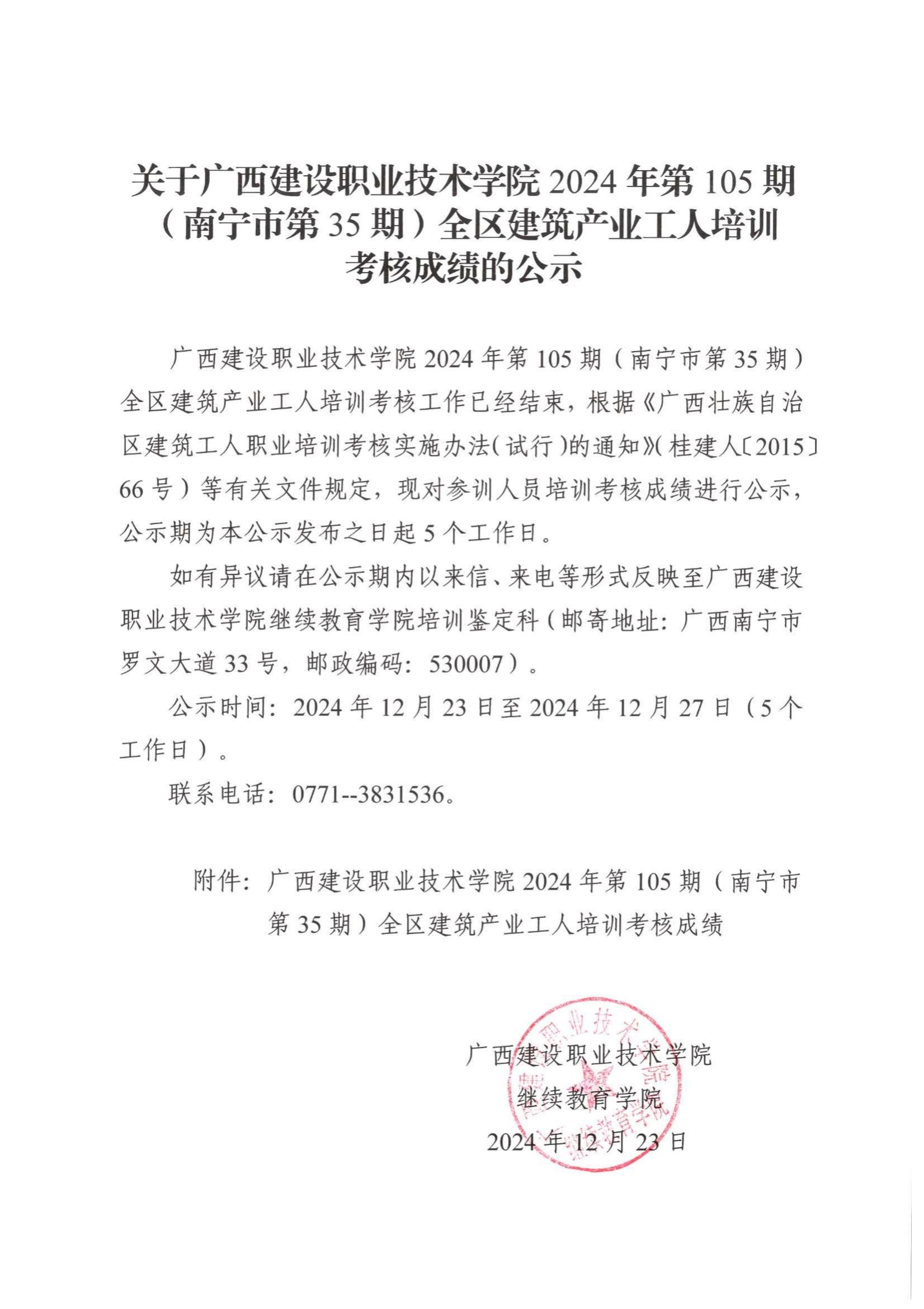 培训信息 当前位置: 首页 >> 培训信息 >> 正文 关于雷速在线网站2024年第105期(南宁市第35期)全区雷速在线网站产业工人培训考核成绩的公示 发布日期:2024-12-24 点击: 附件【关于雷速在线网站2024年第105期(南宁市第35期)全区雷速在线网站产业工人培训考核成绩的公示.pdf】已下载次