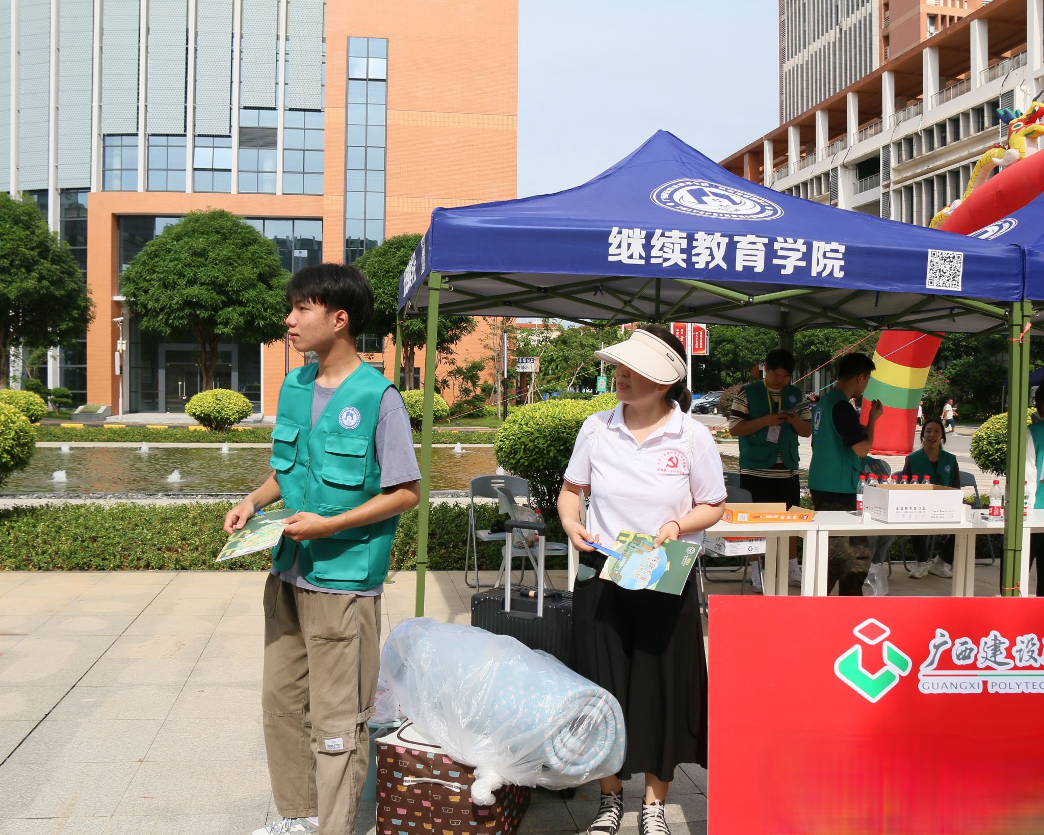 广西建院8月27日讯(继续教育学院 王慧淼)为做好首页继续教育宣传工作,为2023级新生提供更多的学习与提升职业能力的机会。8月27日,继续教育学院由王慧淼老师带领职业培训服务社的全体社员开展迎新宣传活动。