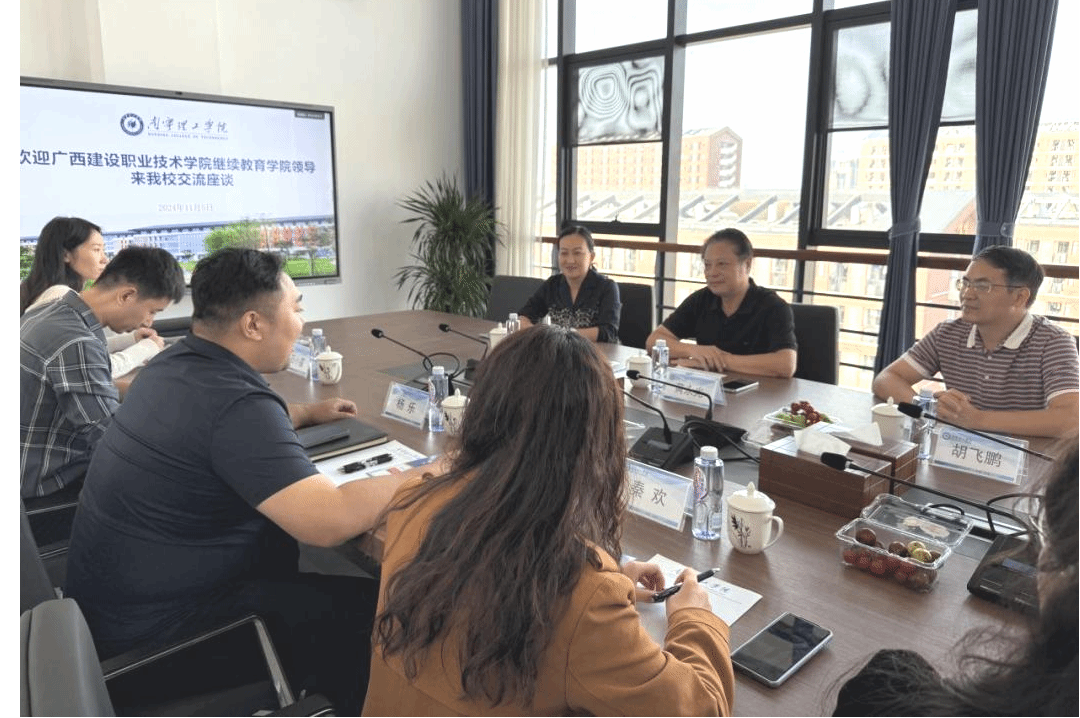 广西建院11月5日讯(继续教育学院 陈剑梅)为进一步推动高等学历继续教育事业的创新与发展,加强校际间的交流与合作,2024年11月5日下午,继续教育学院院长黄永光、副院长胡飞鹏一行3人赴南宁理工学院继续教育学院进行交流学习,受到了南宁理工学院继续教育学院杨乐院长及全体成员的热情接待。