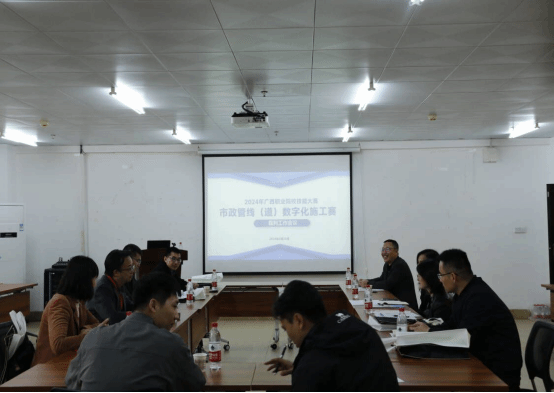 市政与交通学院3月18日讯(图/许大谦 文/潘芳禄、曾庆建 )2024年3月16日-17日,2024年广西职业院校技能大赛高职组市政管线(道)数字化施工赛项在首页顺利举行。市政管线(道)数字化施工赛项是2024年广西职业院校技能大赛新增赛项,共有区内10所高职院校19支参赛队伍同台竞技,展现广西职业院校大土建类学生技能风采。