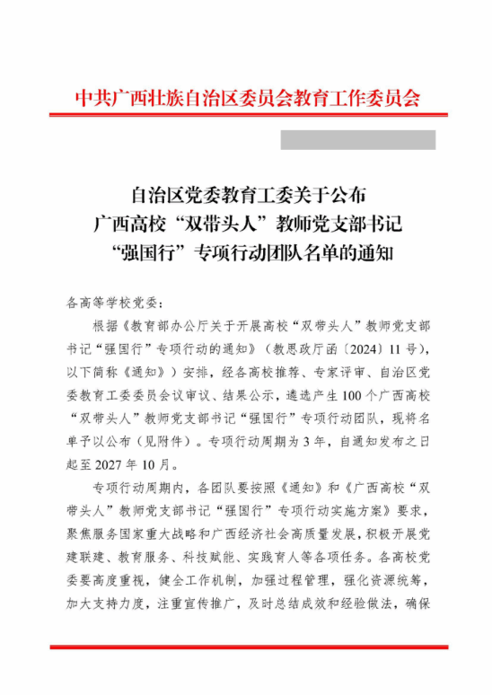 喜报:市政与交通学院“双带头人”教师党支部入选广西高校“双带头人” “强国行”专项行动团队