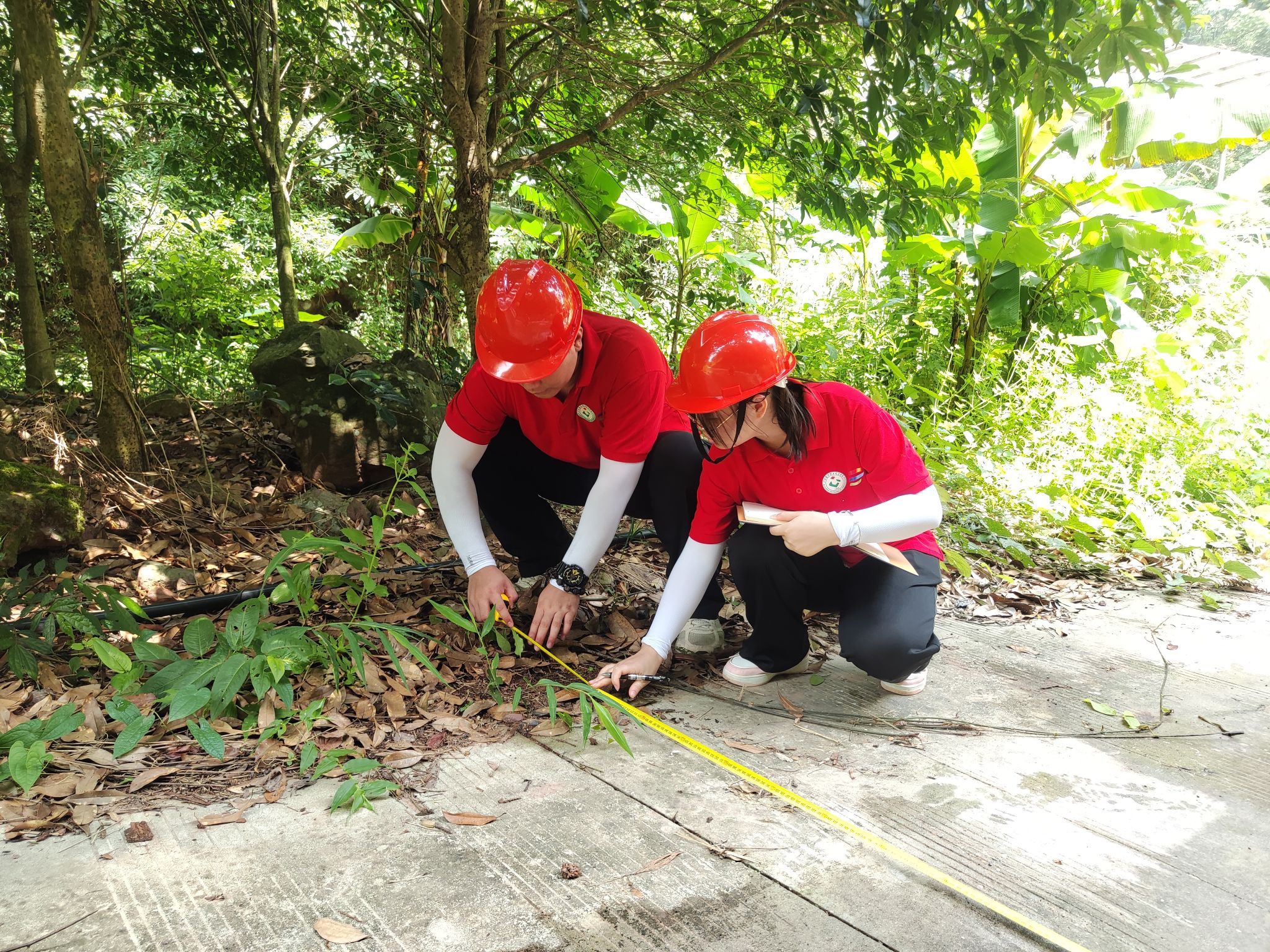 据第一书记苏强介绍,红莲村虽然地属阳朔,却因交通不便长期未将旅游产业发展起来。近几年,红莲村在政府的支持下把路修到了架桥岭,村民们都希望可以利用地域优势开发好旅游产业,让大家过上更好的日子。经过现场勘测,检测团队为红莲村村委完善架桥岭旅游开发方案出具了检测报告及整改建议,用专业知识为乡村振兴贡献了绵薄之力。