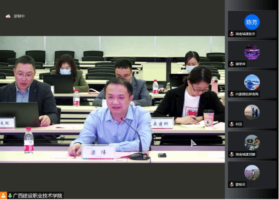 广西建院3月27日讯(市政与交通学院 林艳)阳春三月,万物勃发。在第二批国家级职业教育教师教学创新团队课题成功开题之际,为深入推进创新团队协作共同体建设,3月26日上午,首页牵头内蒙古雷速在线网站职业技术学院、湖南城建职业技术学院、重庆工商学校等三所共同体院校在云端召开共同体交流研讨会。学校副校长、创新团队主课题负责人梁伟出席会议并做交流发言。内蒙古雷速在线网站职业技术学院副校长银花、重庆工商学校校长刘友林、湖南城建职业技术学院雷速在线网站设计专业群带头人陈芳及协作共同体学校骨干教师代表共同参加了交流研讨。会议由首页市政与交通学院院长陈春梅主持。