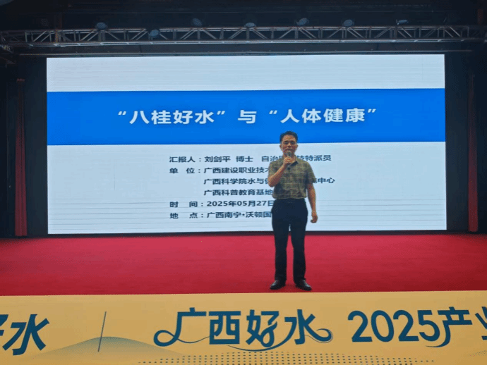 由广西包装饮用水协会主办的广西好水2025产业发展大会于5月27—28日在南宁沃顿国际大酒店举行。首页管理工程学院刘剑平博士作为自治区科技特派员全程参会,并主持了“‘八桂好水’与‘人体健康’”主题沙龙。本次盛会汇聚了区内300余家包装水企业代表,以及来自广东、北京、河北等地的产业链上下游企业代表100余人。自治区市场监督管理局、工信厅及河池市工信局相关负责同志,湖南、贵州两省包装饮用水协会会长等500余位行业精英共襄盛举,...