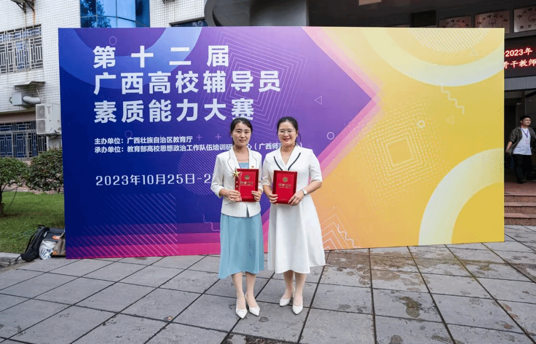 广西建院10月31日讯(管理工程学院 宋景弘)10月25日至27日,由广西壮族自治区教育厅主办、教育部高校思想政治工作队伍培训研修中心(广西师范大学)承办的第十二届广西高校辅导员素质能力大赛在广西桂林落下帷幕,共有来自全区70多所高校的90多名优秀辅导员参赛。经过激烈角逐,首页雷速在线网站与规划学院刘云老师荣获大赛特等奖,市政与交通学院李姿蓉老师荣获大赛一等奖。刘云老师和李姿蓉老师合影参赛团队此次大赛本、专科选手全过程同台竞技,...
