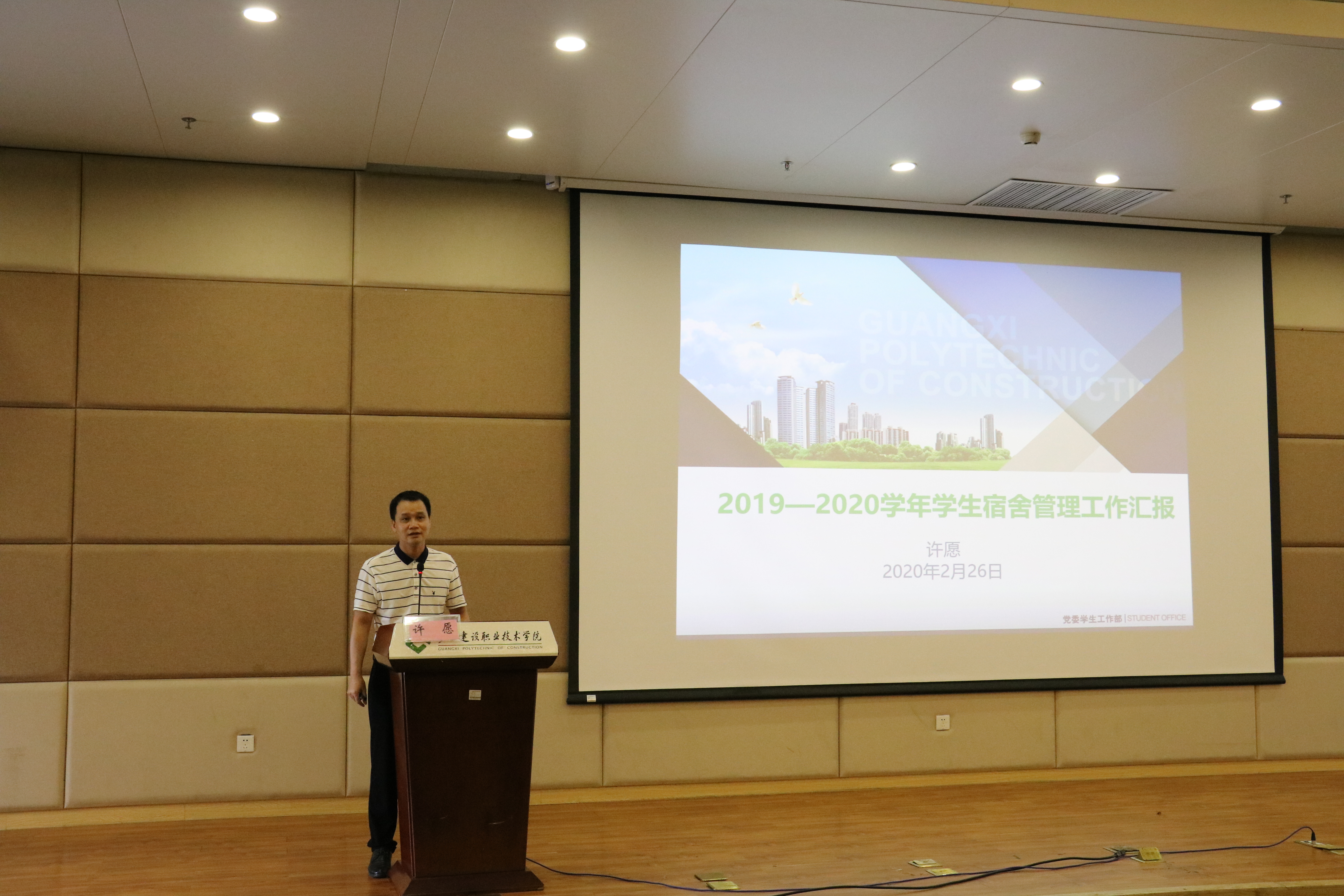 广西建院6月29日讯(党委学生工作部 韦钊思)为进一步加强首页学生宿舍管理工作,积极营造规范整洁、文明和谐的生活学习环境,促进校园文化建设,6月26日下午,首页在4号教学楼1楼报告厅召开学生宿舍管理工作会议。学...