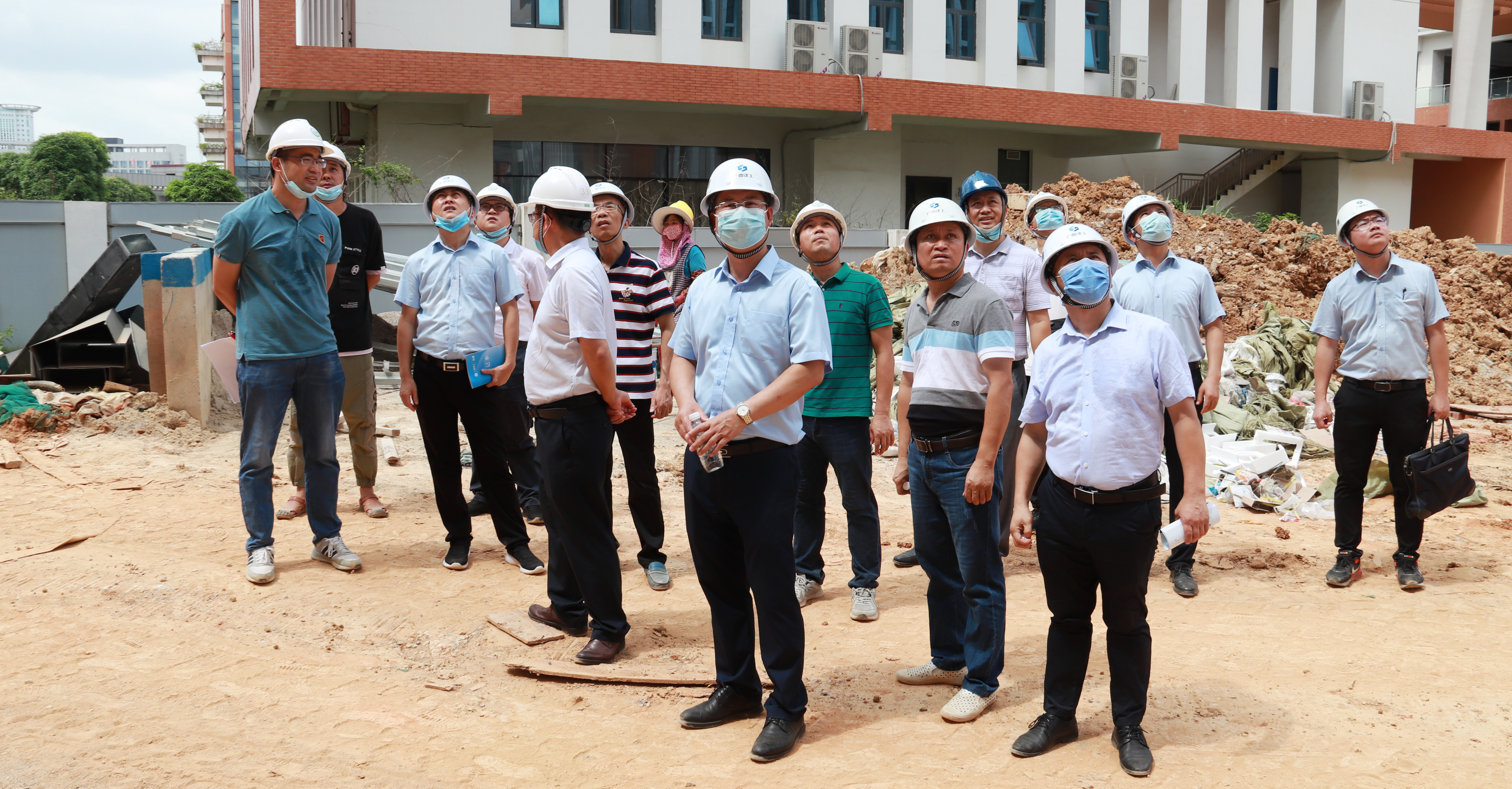 广西建院6月24日讯(基建处 周宇翔)6月23日上午,自治区住建厅建管处陈世山处长、曾俊杰副处长一行到首页新校区建设项目图书馆与行政办公综合楼(含信息中心)项目检查指导工作。学院副院长柏挺,广西五建总公司党委...