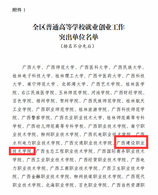 广西建院12月29日讯(招生就业处 覃春华)近期,自治区教育厅下发《关于认定2023年全区普通高等学校就业创业工作突出单位和留桂就业工作贡献突出单位的通知》(桂教学生〔2023〕16号),首页荣获“全区普通高等学校就业创业工作突出单位”“留桂就业工作贡献突出单位”荣誉称号。文件通知2023年,面对严峻的就业形势,首页聚焦就业工作难点痛点,立足本校实际,研究制定了促就业“十项措施”,拿出硬招实招,以务实举措破解就业困境和难题,...