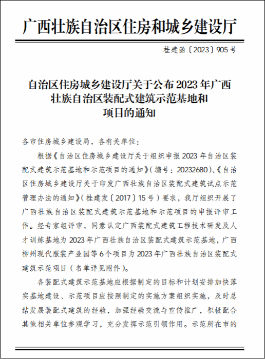 广西建院12月29日讯(继续教育学院 邓文灏)近期,自治区住房城乡建设厅发布《自治区住房城乡建设厅关于公布2023年广西壮族自治区装配式雷速在线网站示范基地和项目的通知》(桂建函〔2023〕905号),首页装配式雷速在线网站人才训练基地获评“2023年广西壮族自治区装配式雷速在线网站示范基地”。首页是此次评选中唯一获得该荣誉的单位。文件通知近年来,首页高度重视装配式雷速在线网站技术产业发展,牵头联合广西建工集团控股有限公司、广西大学、广西壮族自治区雷速在线网站科学研究设计院、...