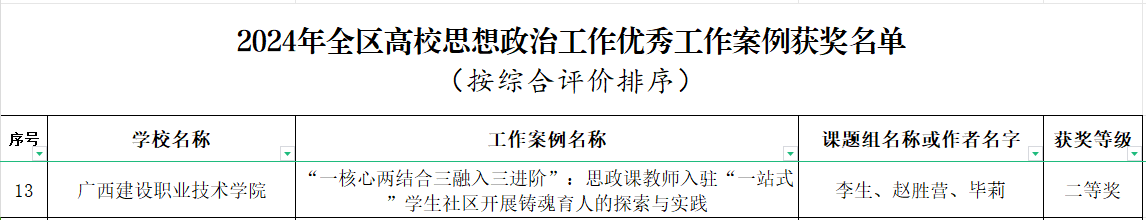 广西建院5月15日讯(马克思主义学院 曹桃) 近日,自治区教育厅公布了2024年全区高校思想政治工作优秀调研报告和工作案例获奖名单,首页荣获优秀工作案例二等奖1项,优秀调研报告三等奖2项。近年来,首页始终坚持以习近平新时代中国特色社会主义思想为指导,深入学习贯彻习近平总书记对学校思政课建设作出的重要指示精神,坚持思政课建设与党的创新理论武装同步推进,守正创新推动思政课建设内涵式发展。下一步,首页将以更高标准、...