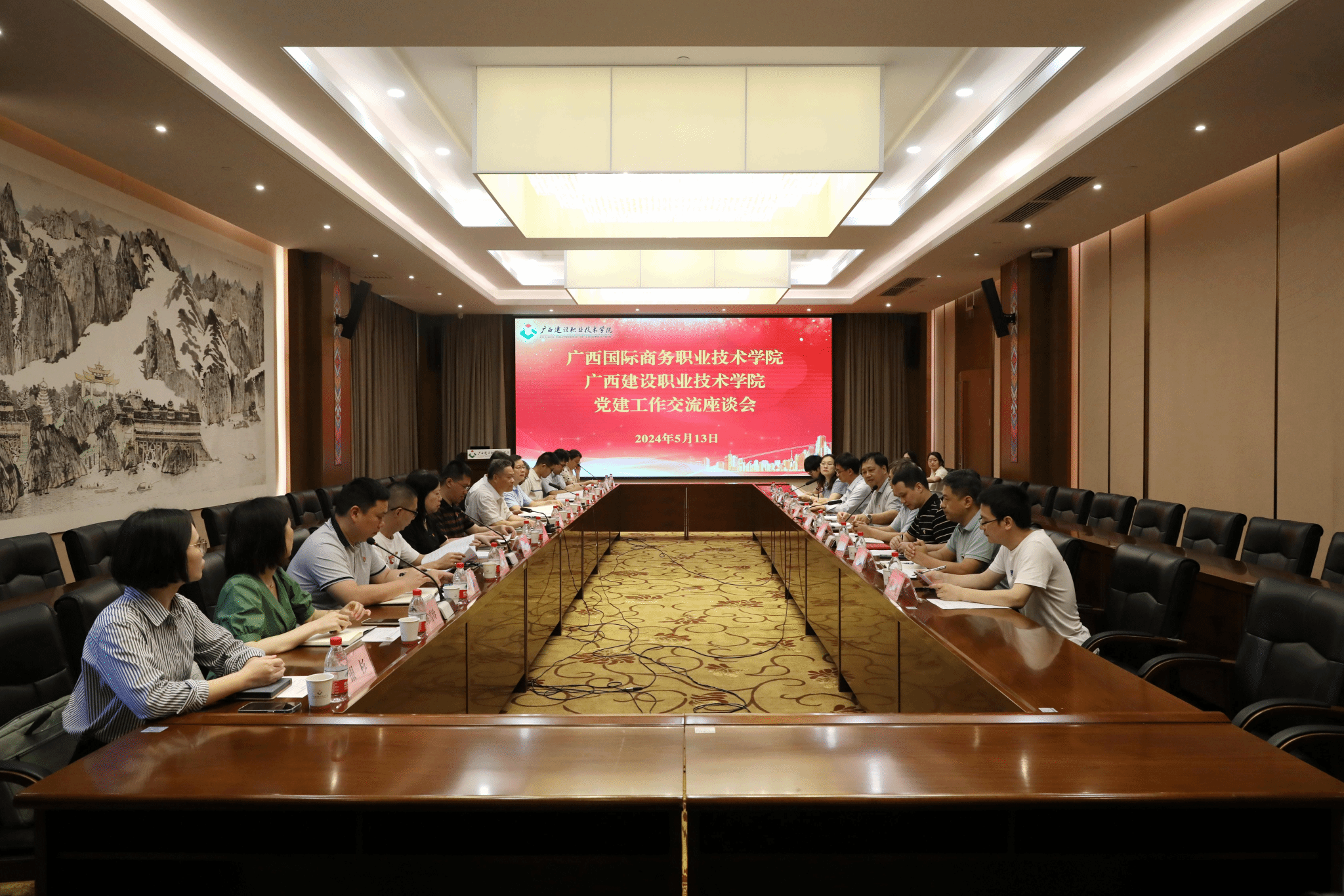 广西建院5月14日讯(文/党委组织部 图/党委宣传部 韦植巍)5月13日,广西国际商务职业技术学院党委副书记青增计一行14人到首页考察交流,双方就做好新时代党建“双创”和“双带头人”教师党支部书记工作室培育创建工作进行了探讨交流。首页党委副书记曾繁雄出席座谈会并陪同参观,党委组织部分管负责人、相关二级学院党总支书记参加座谈会。会议现场座谈会上,曾繁雄副书记对青增计副书记一行的到来表示热烈欢迎,并从学校党委、二级学院党组织和基层党支部层面,...