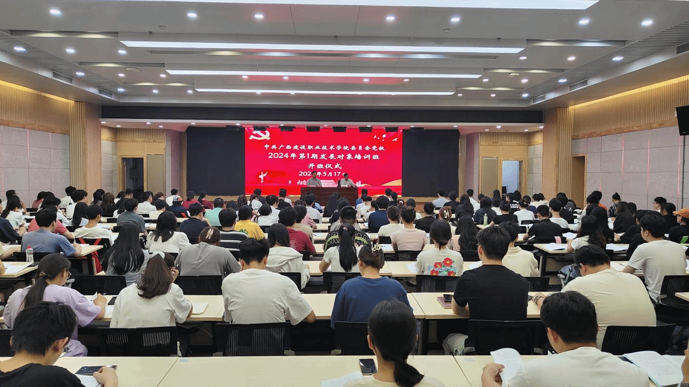广西建院5月20日讯(党委组织部 宋东辉)根据《中国共产党发展党员工作细则》和学校发展党员工作安排,5月17日至5月19日,学校2024年第1期发展对象培训班在四教二楼学术报告厅成功举办。来自各二级学院党总支、直属党支部和校属企业共193名发展对象参加培训,培训以理论授课、社会实践等多种方式开展。培训班开班仪式5月17日,学校党委副书记、党校校长曾繁雄出席开班仪式并作动员讲话,学校党委组织部副部长魏武主持。曾繁雄副书记指出,...