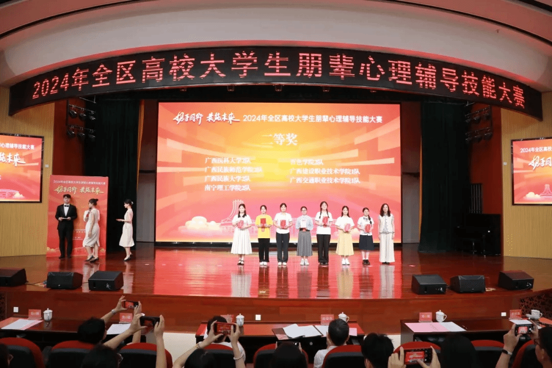 广西建院5月29日讯(心理健康教育与咨询中心)5月25日至26日,由自治区教育厅主办的2024年全区高校大学生朋辈心理辅导技能大赛圆满落幕,首页代表队荣获大赛二等奖。大赛现场本次大赛以“携手同行,共筑未来”为主题,吸引了区内75所高校的109支队伍参赛(其中本科58支,高职高专51支),参赛学生和指导老师达600余名。经过心理健康知识短视频制作、心理健康知识测试(笔试)、朋辈心理辅导模拟三个环节的激烈角逐,首页代表队总成绩名列高职高专组二等奖第一名。...