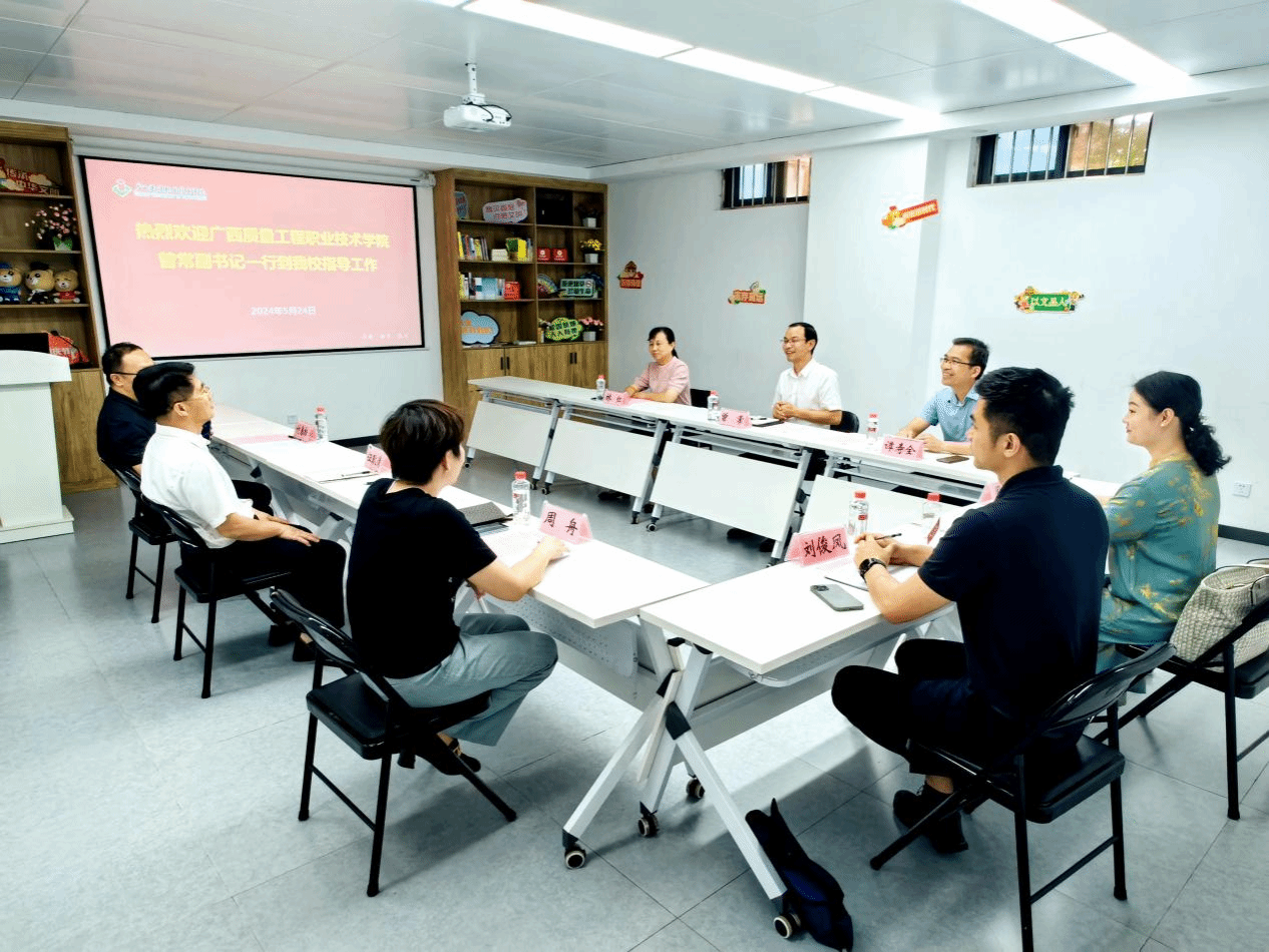 广西建院5月29日(党委学生工作部 马凯)近日,广西质量工程职业技术学院党委副书记、纪委书记曾常一行5人到首页,重点围绕“一站式”学生社区综合管理模式建设开展调研交流。首页副校长伍耿清,学工处、教务处相关领导陪同调研。曾常书记一行先后参观了首页“一站式”学生社区部门功能空间,详细听取了功能空间负责老师的介绍。参观结束后,双方来到学生社区网络思政中心会议室进行座谈交流。伍耿清副校长对曾常副书记一行的到来表示热烈欢迎,...
