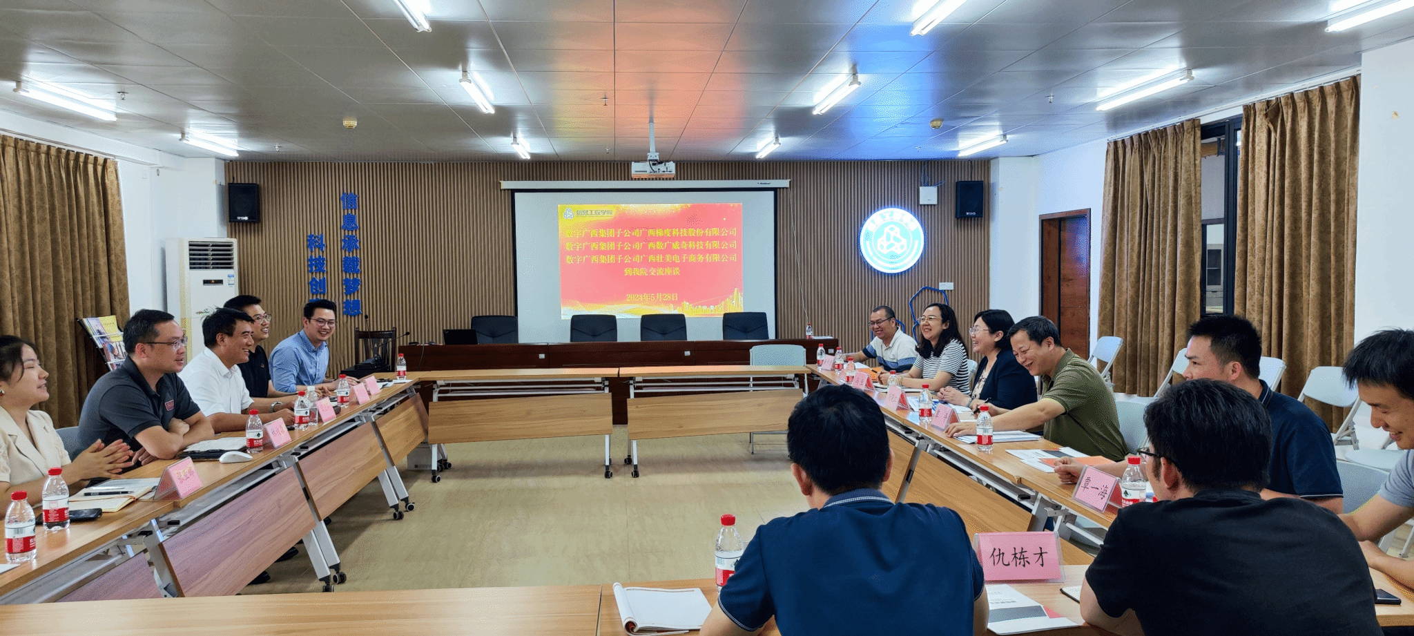 广西建院5月29日讯(文/信息工程学院 徐田保 图/梁国文)为了响应教育部“访企拓岗促就业”专项行动,深化校企交流与合作,5月28日,学校邀请数字广西集团子公司广西梯度科技股份有限公司、广西数广威奇科技有限公司、广西壮美电子商务有限公司到校交流座谈。学校党委书记刘晓红,信息工程学院领导班子、团队负责人、专业负责人参加座谈会。刘晓红书记对到访企业表示热烈欢迎,感谢企业对学校就业工作的大力支持,并介绍了学校的办学特色、...
