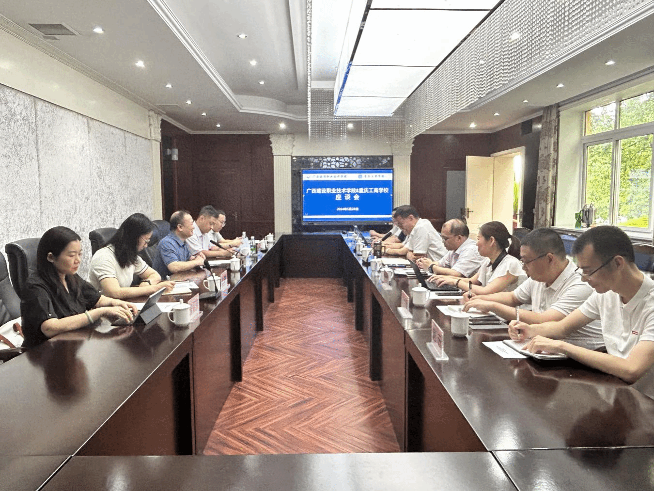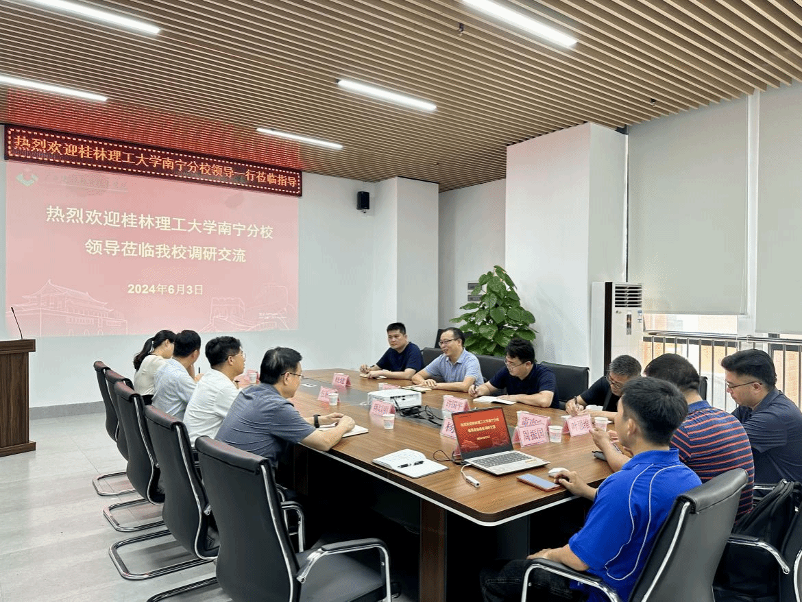 广西建院6月4日讯(后勤管理处 杨琼)6月3日上午,桂林理工大学南宁分校副校长刘高鹏一行4人来首页调研交流。首页副校长伍耿清,学校后勤管理处(安全保卫处)、常州常工电子科技股份有限公司负责人及相关人员出席座谈会。会议现场会上,伍耿清副校长对刘高鹏副校长一行的到来表示热烈欢迎,并介绍了首页后勤管理处(安全保卫处)的基本情况及近年来学校获得全区大学生校园生活环境满意度TOP1等方面的成绩和主要做法。伍耿清副校长表示,...