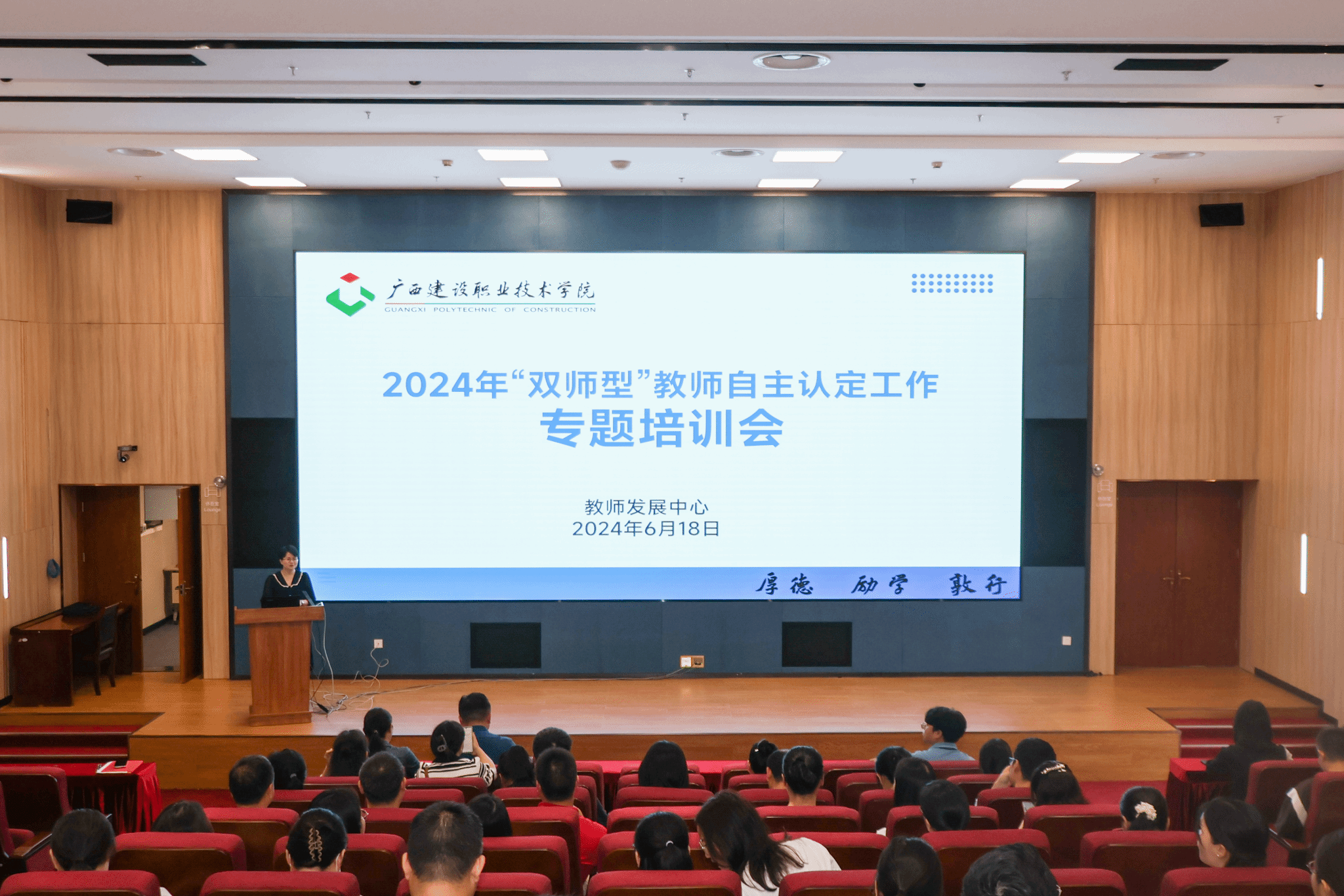 广西建院6月19日讯(文/教师发展中心 张望 图/记者团 李承宏)6月18日,首页在图书馆一楼报告厅召开“双师型”教师自主认定工作专题培训会。各二级学院、各部门领导及相关工作人员,及有意申报“双师型”教师的教职工参加会议。会议由教师发展中心主任阳艳美主持。会上,阳艳美主任对学校“双师型”教师自主认定实施方案进行了充分解读,对往年认定过程中存在的问题案例进行了具体分析,并对2024年“双师型”教师自主认定具体工作进行了安排部署。...