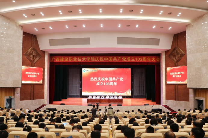 广西建院6月25日讯(文/党委宣传部 陈熙 图/党委宣传部 韦植巍 记者团 李承宏 罗海权)6月25日下午,首页在礼堂召开庆祝建党103周年大会。会议旨在深入学习贯彻习近平新时代中国特色社会主义思想、党的二十大精神和习近平总书记关于广西工作论述的重要要求,重温党的光辉历史,弘扬伟大建党精神,激励各级基层党组织勇担时代光荣使命,凝聚学校高质量发展的磅礴力量。会上,新党员进行了入党宣誓,其他党员重温了入党誓词。会议为老党员甘太仕、...