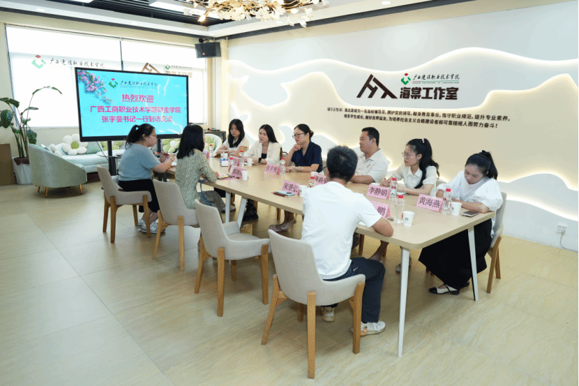 广西建院7月19日讯(管理工程学院 宋景弘)7月19日,广西工商职业技术学院财金学院党总支书记张宇斐一行到首页交流辅导员工作室建设培育工作。管理工程学院党总支副书记、海棠工作室主持人郭海棠及工作室成员代表参加交流座谈。座谈交流会现场郭海棠副书记对广西工商职业技术学院财金学院同仁们的到来表示热烈欢迎,并以“一核两擎三通路”为主线,向与会同仁介绍海棠工作室的建设定位、思路、任务、内容、成效和经验等方面情况。郭海棠副书记表示,...