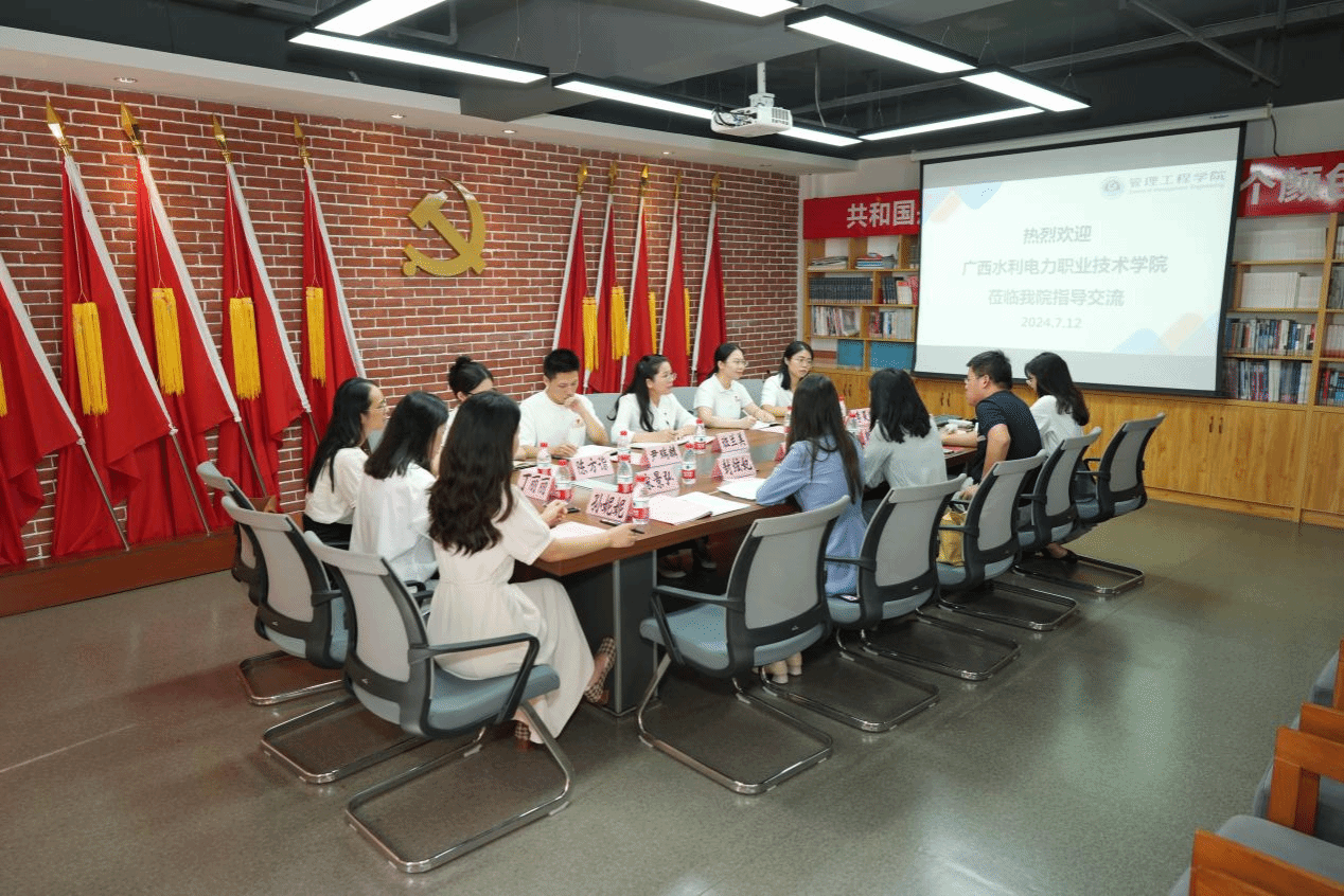 广西建院7月14日讯(管理工程学院 宋景弘 黄春)7月13日,广西水利电力职业技术学院经济管理学院党总支书记班兰美一行8人到首页管理工程学院就党建“双创”工作经验、辅导员工作室建设、“一站式”学生社区建设参观交流,学院党总支副书记郭海棠主持交流会。双方在管理工程学院党员活动室进行座谈交流。郭海棠副书记对班兰美书记一行的到来表示热烈欢迎,并介绍了管理工程学院探索党建与事业发展深度融合、以高质量党建引领高质量发展的思路方法、...