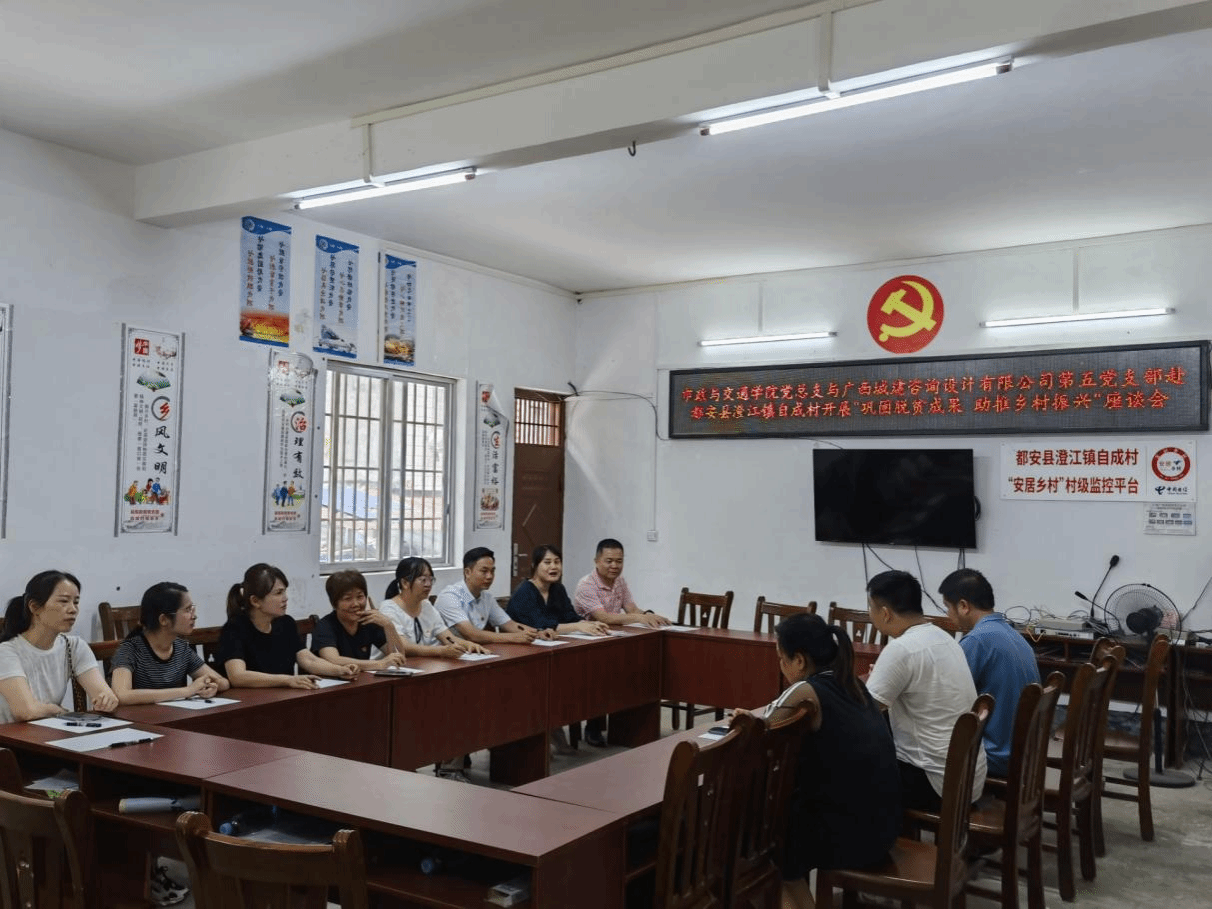 广西建院7月17日讯(市政与交通学院 文/何炎 图/杨彩艺)为落实“四个不摘”,扎实推进“五大振兴”,切实抓好巩固拓展脱贫攻坚成果同乡村振兴有效衔接工作,7月17日,市政与交通学院党总支联同广西城建咨询设计有限公司(以下简称“城建咨询公司”)第五党支部党员代表赴都安瑶族自治县澄江镇自成村开展共建座谈会,并走访慰问低收入脱贫户和驻村第一书记。座谈会现场开展联建共建主题活动座谈会上,市政与交通学院党总支、城建咨询公司第五党支部党员代表同驻村工作队、...