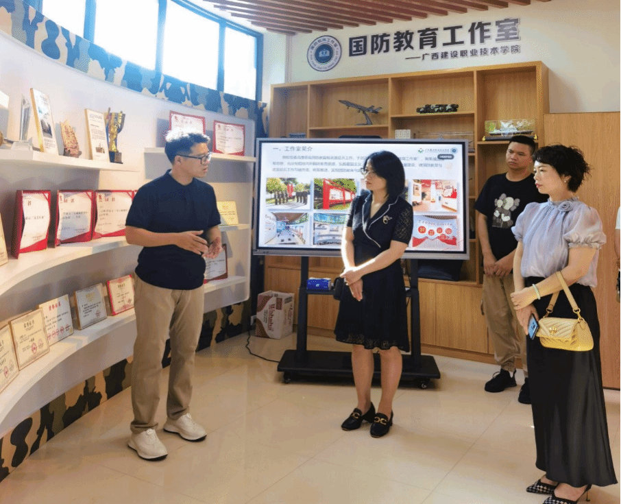广西建院7月26日讯(文/谢一玲 图/谢一玲)7月26日,自治区退役军人培训中心培训部郭雪霜部长一行到首页调研交流国防教育工作和退役复学大学生的培训学习情况。首页继续教育学院副院长龚剑,党委学生工作部(党委武装部、学生工作处)学生科,国防教育工作室负责人及工作室成员代表参加交流。 参观国防教育工作室 国防教育工作室张悬鹏老师向到访的领导一行汇报了工作室的建设情况。学校党委高度重视国防教育与武装征兵工作。在学校党委的精心指导下,...