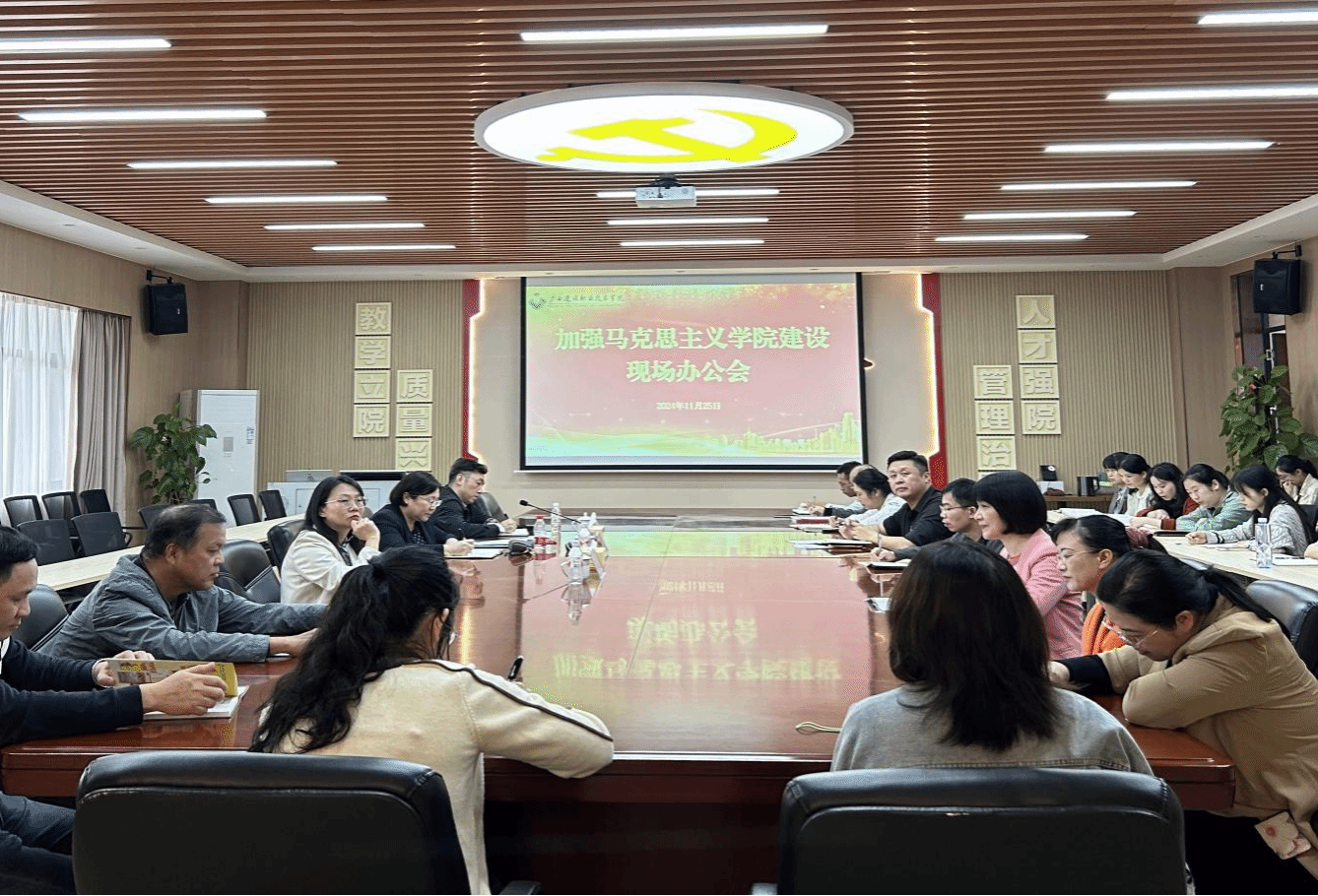 广西建院11月26日讯(马克思主义学院 文/宋佳雄 图/马日凤)11月25日下午,学校党委书记刘晓红到马克思主义学院召开现场办公会,就加强马克思主义学院建设和思政课建设工作进行座谈交流。党委办公室(学校办公室)部门负责人,教务处相关人员,马克思主义学院班子成员、全体思政课教师参加会议。会上,马克思主义学院党政领导分别介绍了近年来取得的标志性成果及特色马克思主义学院建设情况,并以问题为导向,汇报了学院在高质量发展、...