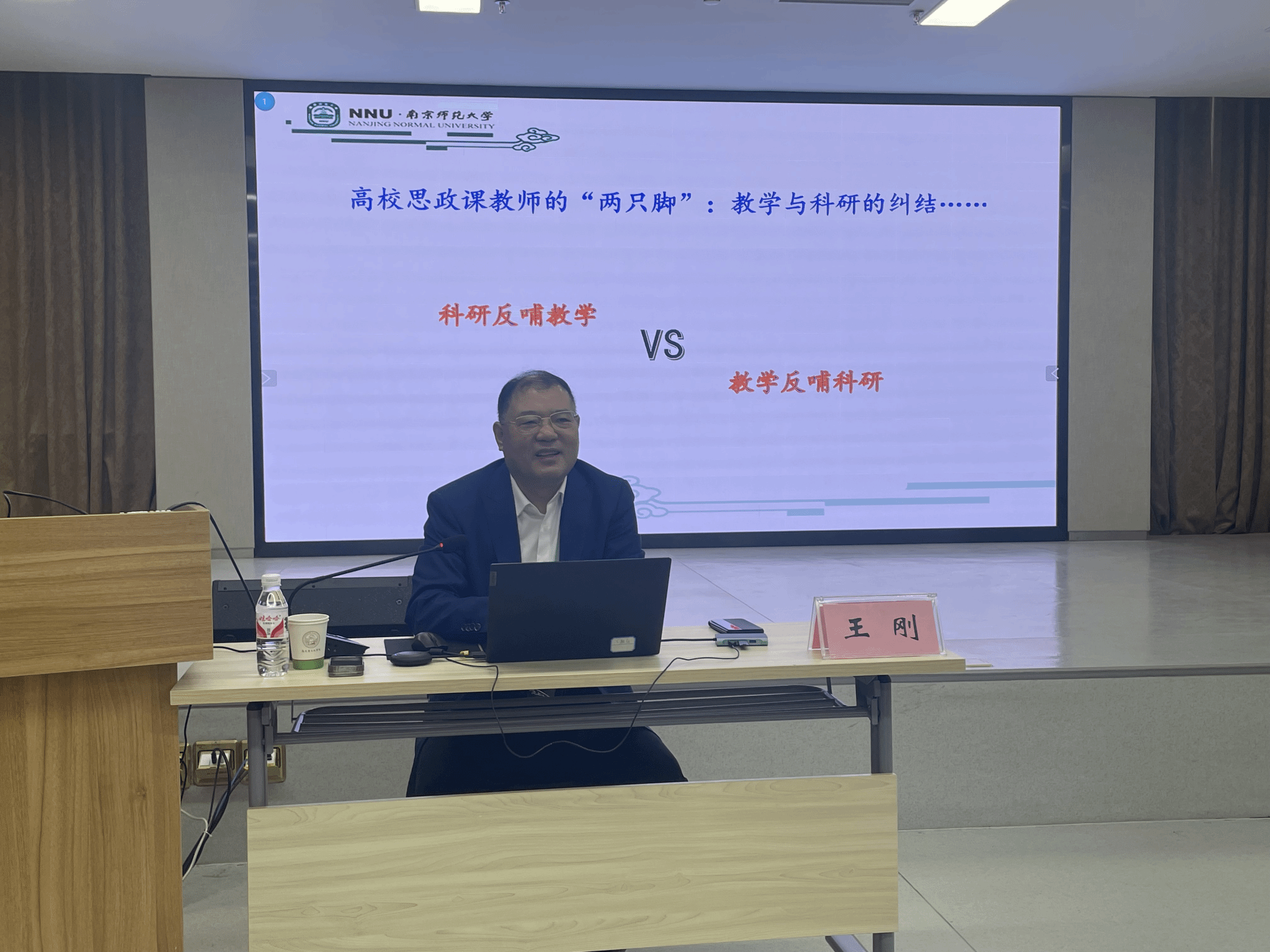 广西建院11月26日讯(马克思主义学院 宋佳雄)近日,南京师范大学马克思主义学院院长王刚教授到校讲学。学校党委副书记曾繁雄出席活动,全体思政课教师参加。讲座由马克思主义学院党总支书记邱岚主持。讲座上,王刚教授以高校思政课教师如何将思政课科研与教学统一起来,实现二者的双向促进为切入点,从科研服务教学、教学反哺科研、教学与科研的双向驱动三个方面阐述了思政课教师应该如何正确处理科研与教学的关系。他指出,思政课要想把道理讲深讲透,...