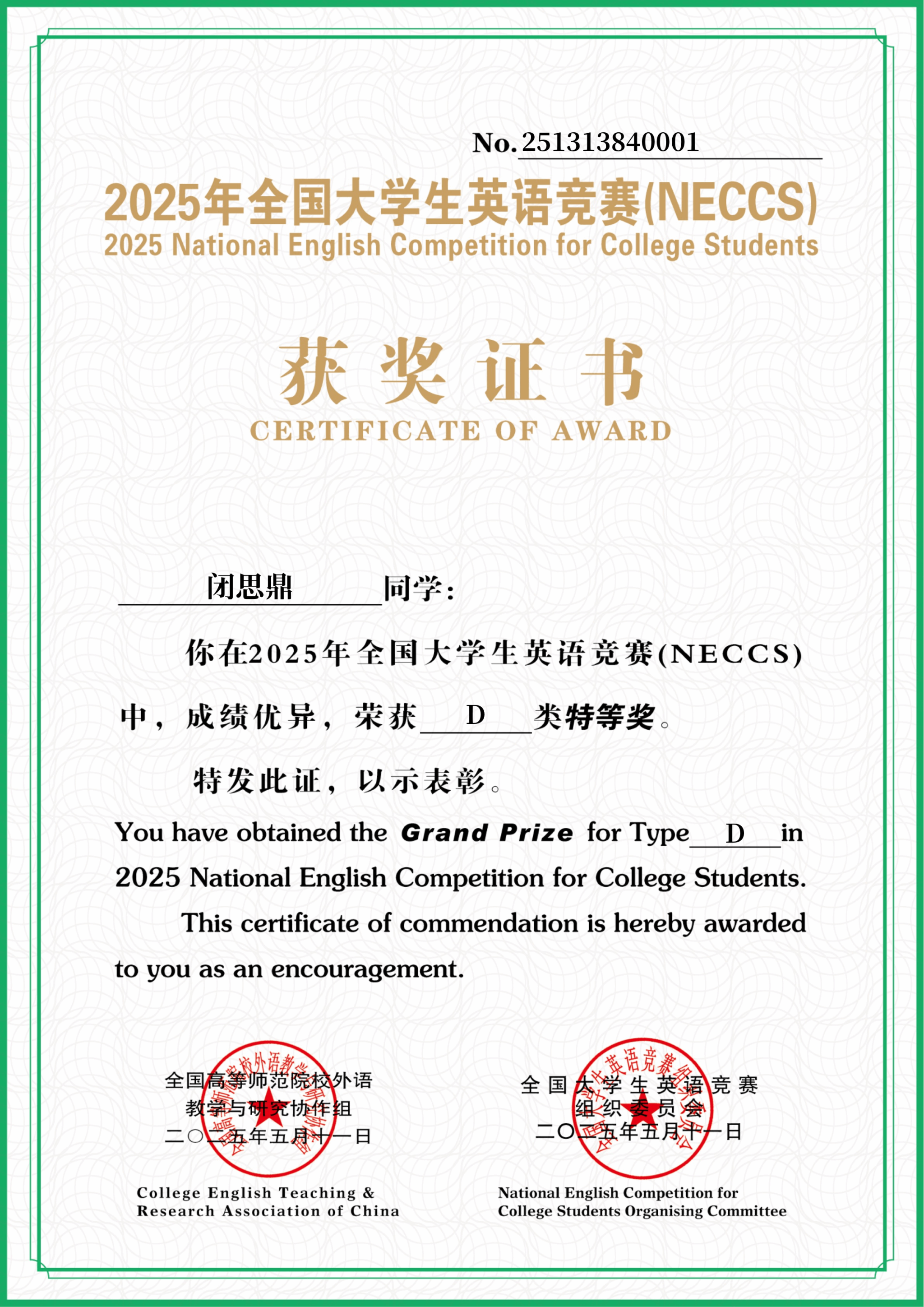 广西建院6月8日讯(人文教育学院 张罗琦)近日,2025年全国大学生英语竞赛(NECCS)广西赛区总决赛圆满落幕。首页闭斯鼎同学在李晶晶老师的指导下,凭借扎实的英语功底和出色的临场发挥,一举夺得特等奖,创下了首页近十年来在该赛事中的最佳成绩。此外,首页学子还收获了二等奖6项、三等奖10项以及优秀奖若干。与往届相比,获奖总数也实现了历史性突破。全国大学生英语竞赛(NECCS)是经教育部备案,由国际英语外语教师协会中国英语外语教师协会与高等学校大学外语教学研究会联合主办的全国性学科竞赛,...