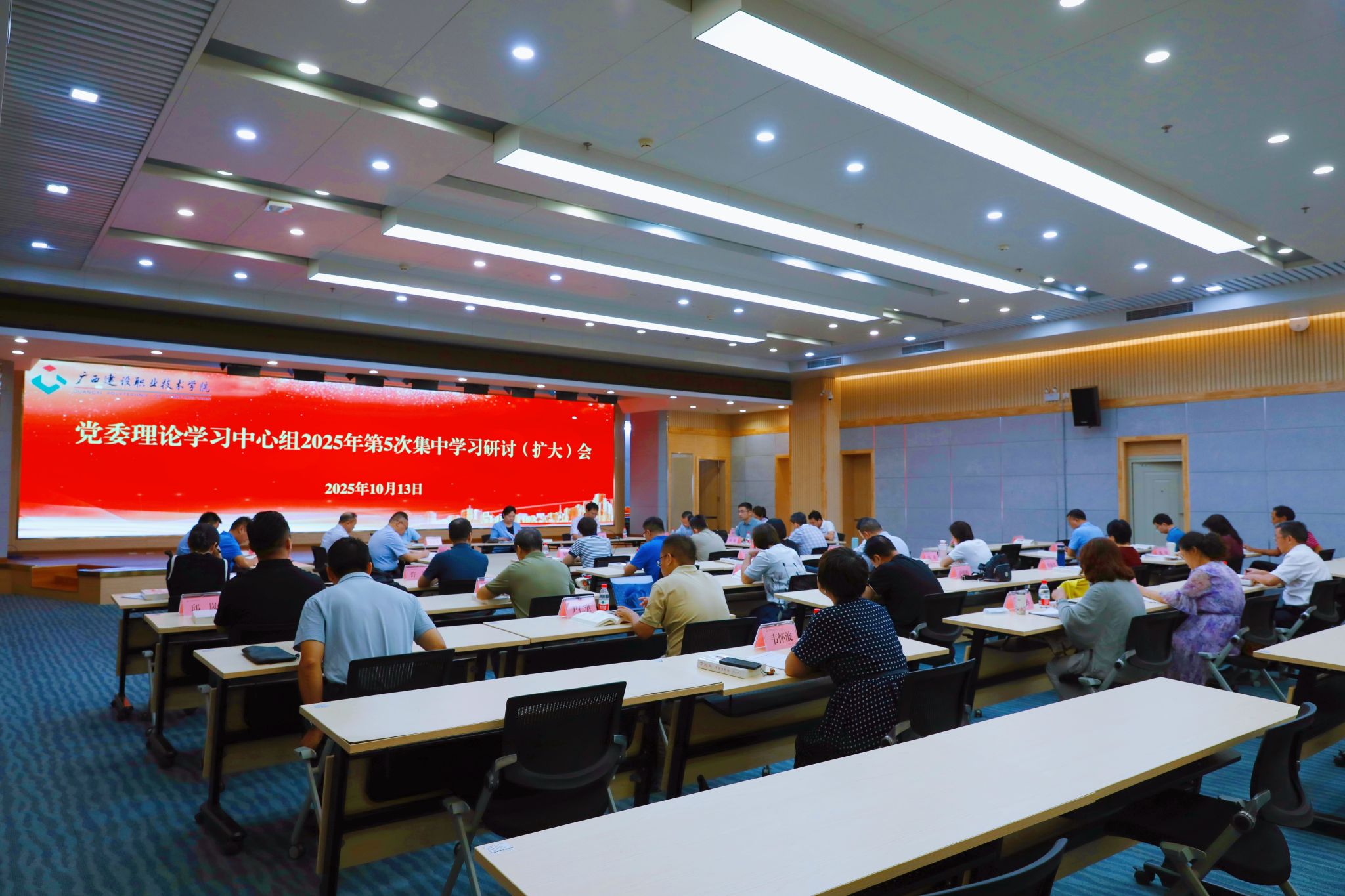 广西建院10月13日讯(党委宣传部 文/陈熙 图/韦植巍)10月13日,学校党委理论学习中心组2025年第5次集中学习研讨(扩大)会在四教二楼报告厅举行,会议认真学习《习近平谈治国理政》第五卷,聚焦“深学细悟笃行新时代党的创新理论,提升学校高质量发展的质效”开展集中研讨。学校党委书记刘晓红主持并讲话。研讨会前,自治区党校原副校长、广西行政学院原副院长,广西百色干部学院原常务副院长唐秀玲教授以《学习贯彻〈习近平谈治国理政〉...