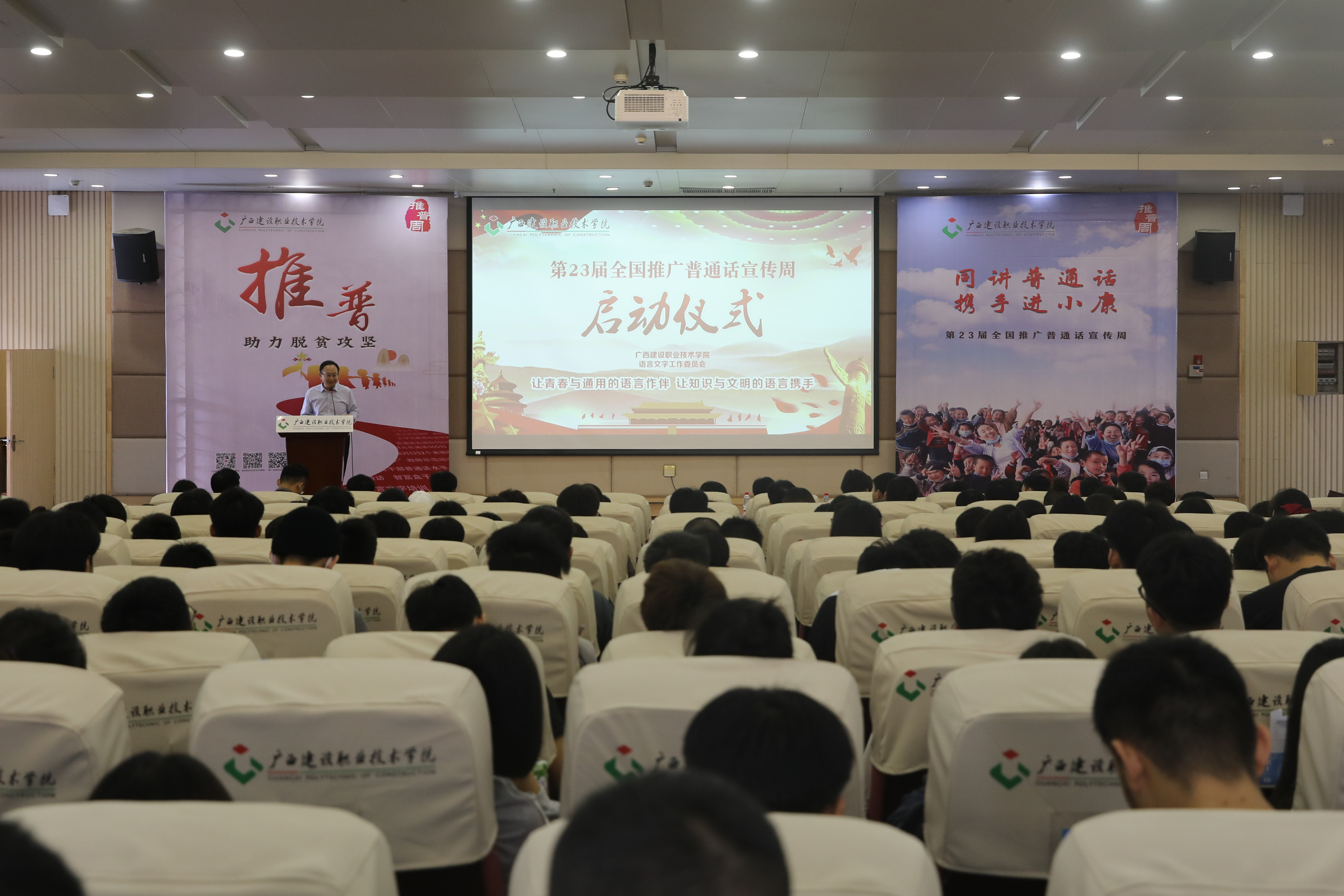 广西建院10月27日讯(文/公共基础部 盛丽梅 院记者团 霍玮 图/院记者团 吴龙)10月26日上午,首页2020年第23届全国推广普通话宣传周(以下简称推普周)启动仪式在四教一楼报告厅举行。学院党委副书记曾繁雄出席仪式,...