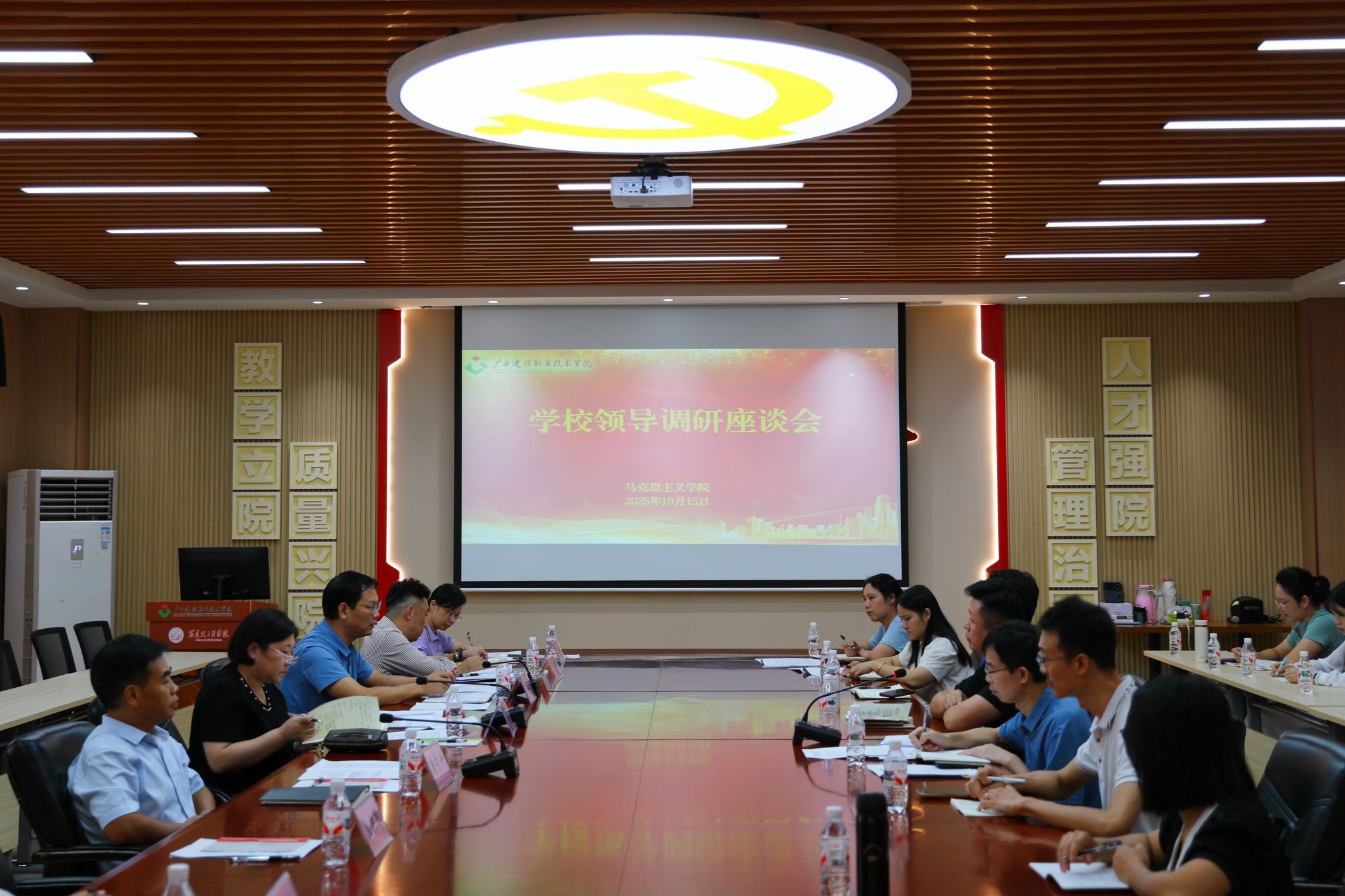 10月15日下午,学校党委书记刘晓红,学校党委副书记、校长梁业胜,学校党委副书记、纪委书记唐东升一行深入马克思主义学院开展专题调研并召开座谈会,研究推进特色马克思主义学院建设工作。党委办公室(学院办公室)、党委宣传部、教务处等部门同志,马克思主义学院班子成员及思政课教师代表参加座谈。会议由马克思主义学院党总支书记邱岚主持。 座谈会现场座谈会上,马克思主义学院副院长(主持行政工作)赵胜营就学院数字化建设、...