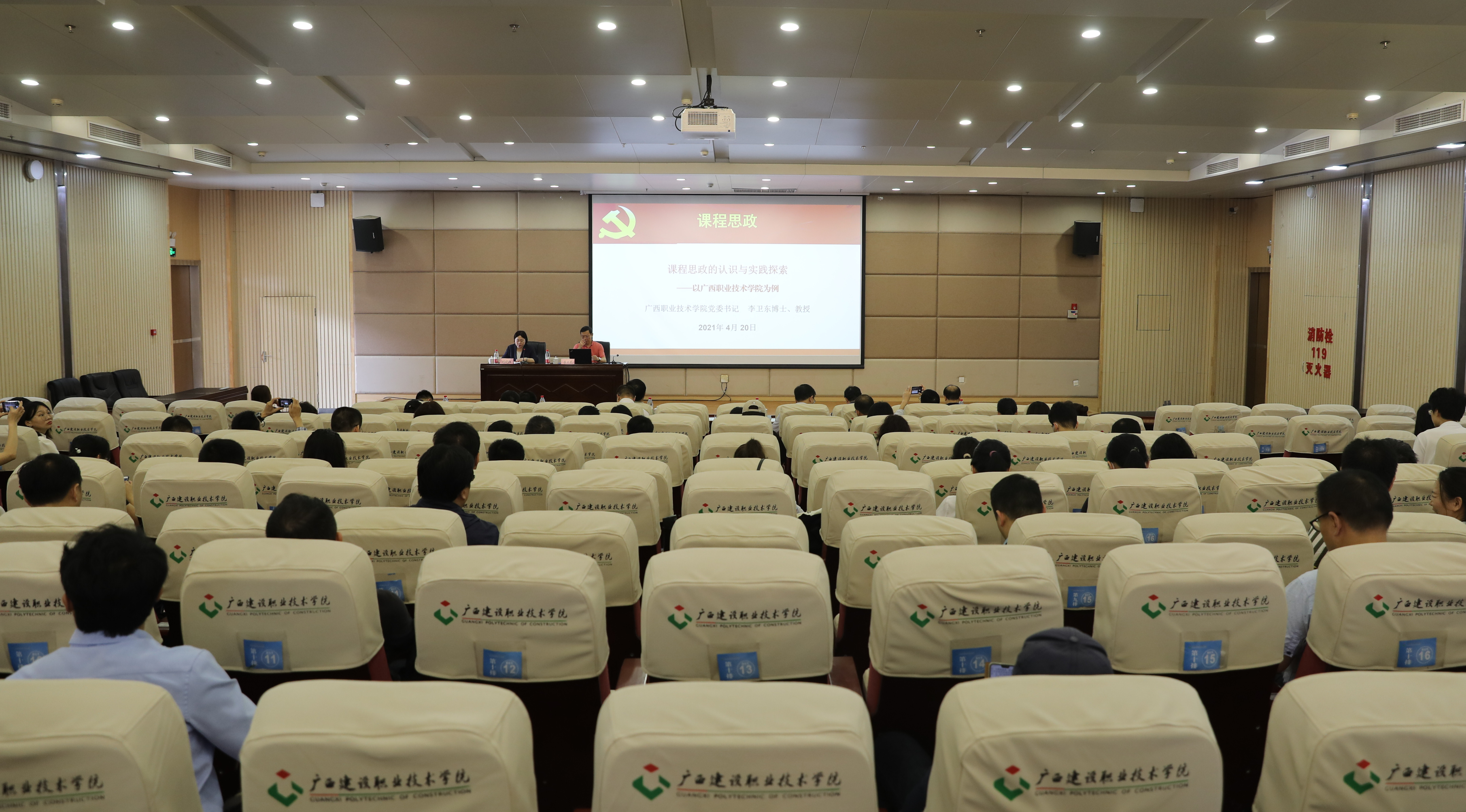 广西建院4月23日讯(文/教务科研处 李莹 图/党委宣传部 陈熙)4月23日上午,广西职业技术学院党委书记李卫东教授应邀来首页,在四教一楼作题为《课程思政的认识与实践探索--以广西职业技术学院为例》的专...