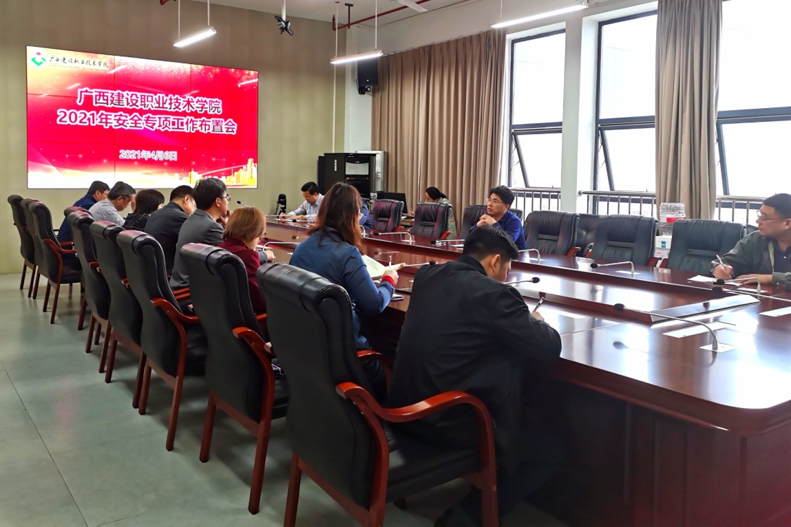 广西建院4月9日讯(后勤管理处 杨琼)4月6日上午,首页在实训南楼709会议室召开2021年安全专项工作布置会,总结、分析、研判首页安全稳定工作,部署下一阶段工作。党委学生工作部、后勤管理处(安全保卫处)、实...