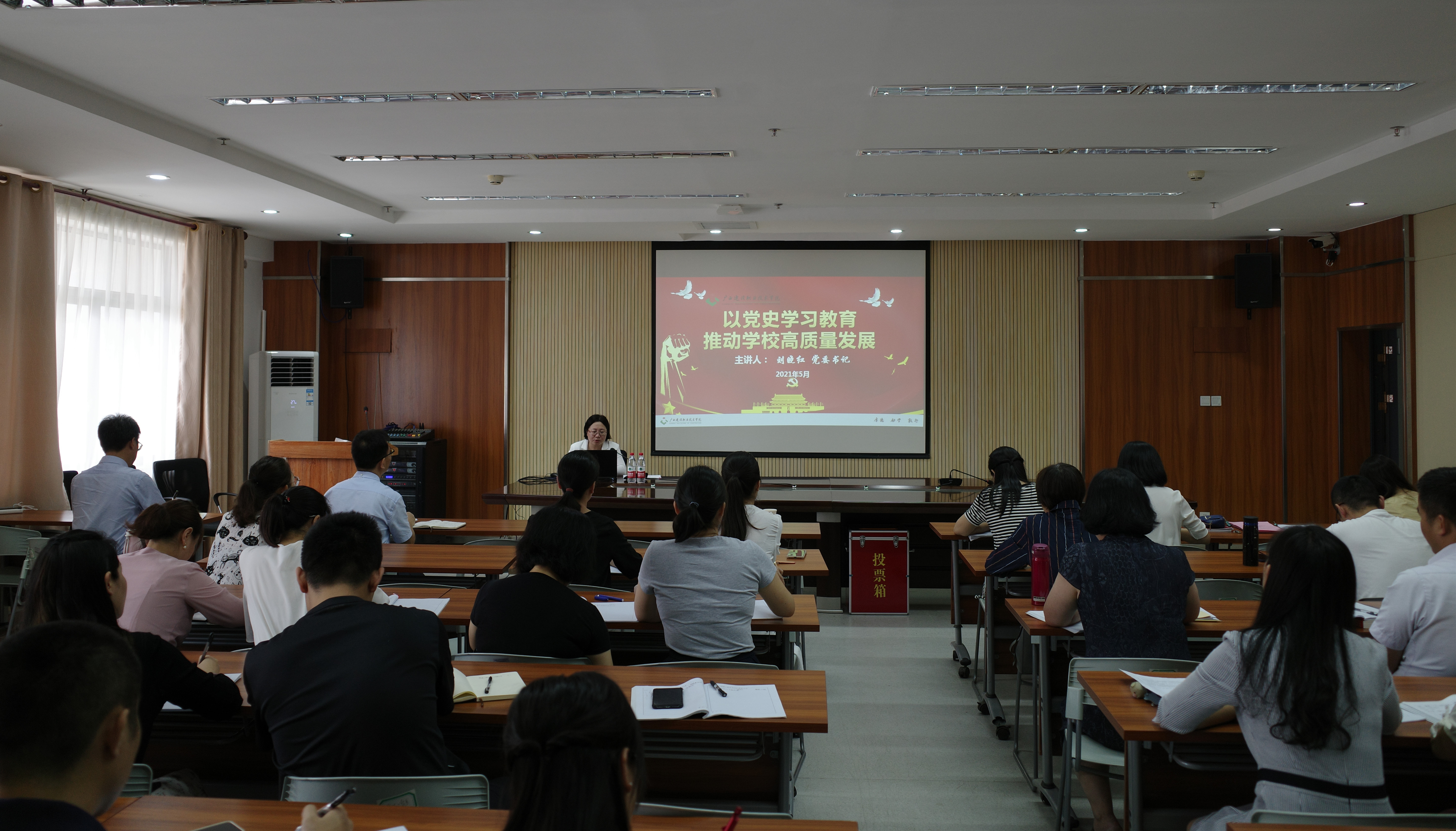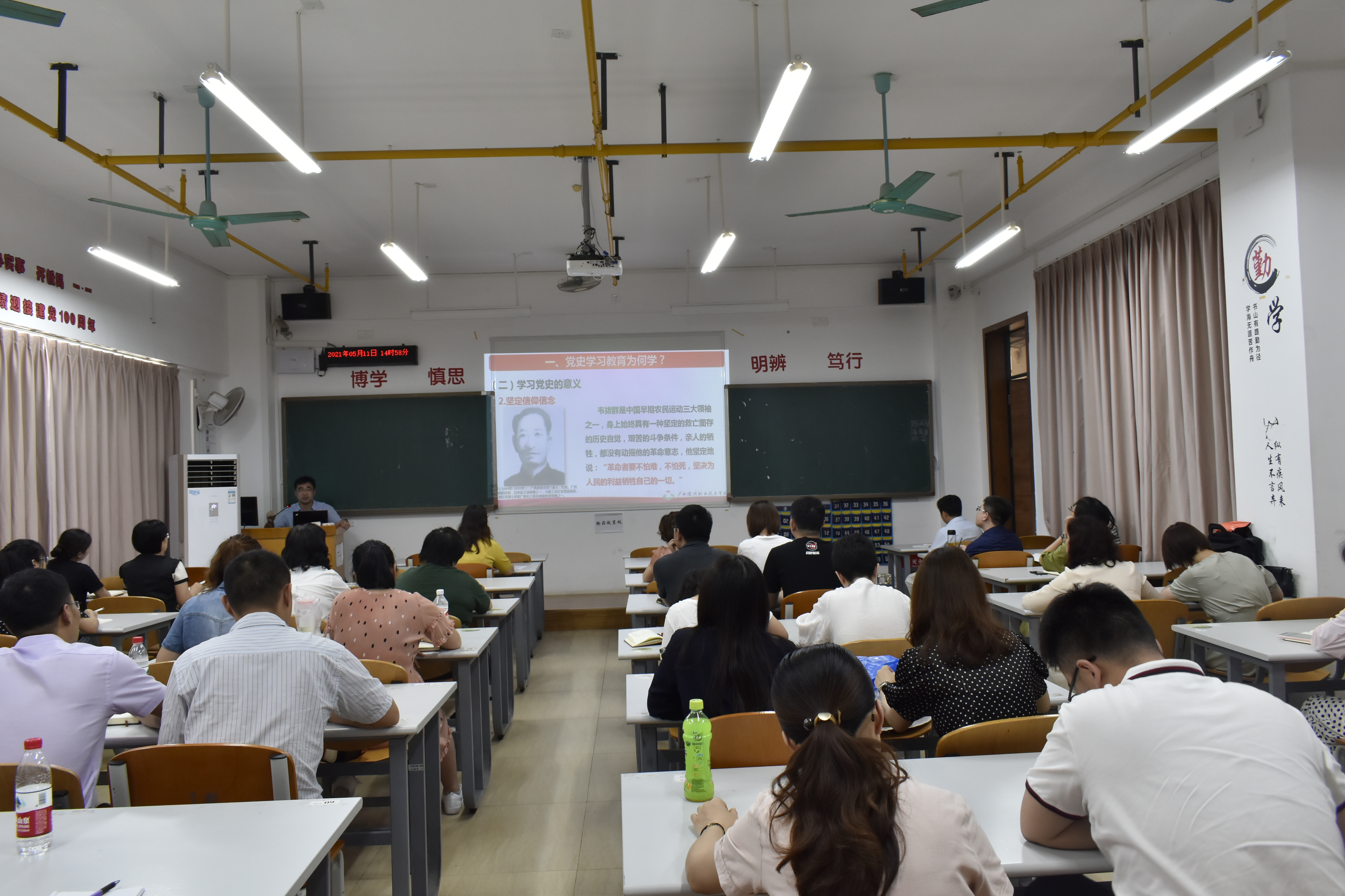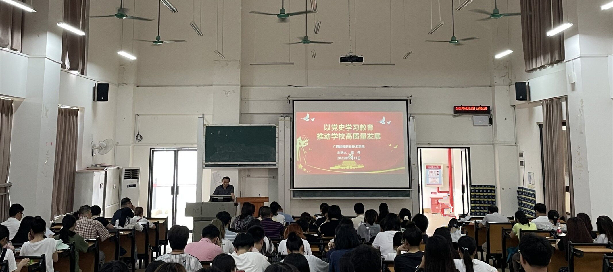 广西建院5月12日讯(公共基础部 文澜)5月11日下午,学院副院长伍耿清在三教812会议室讲授题为《以党史学习教育推动学校高质量发展》的党课。直属公共基础部党支部全体党员参加了本次党课学习。 伍耿清副院长结...