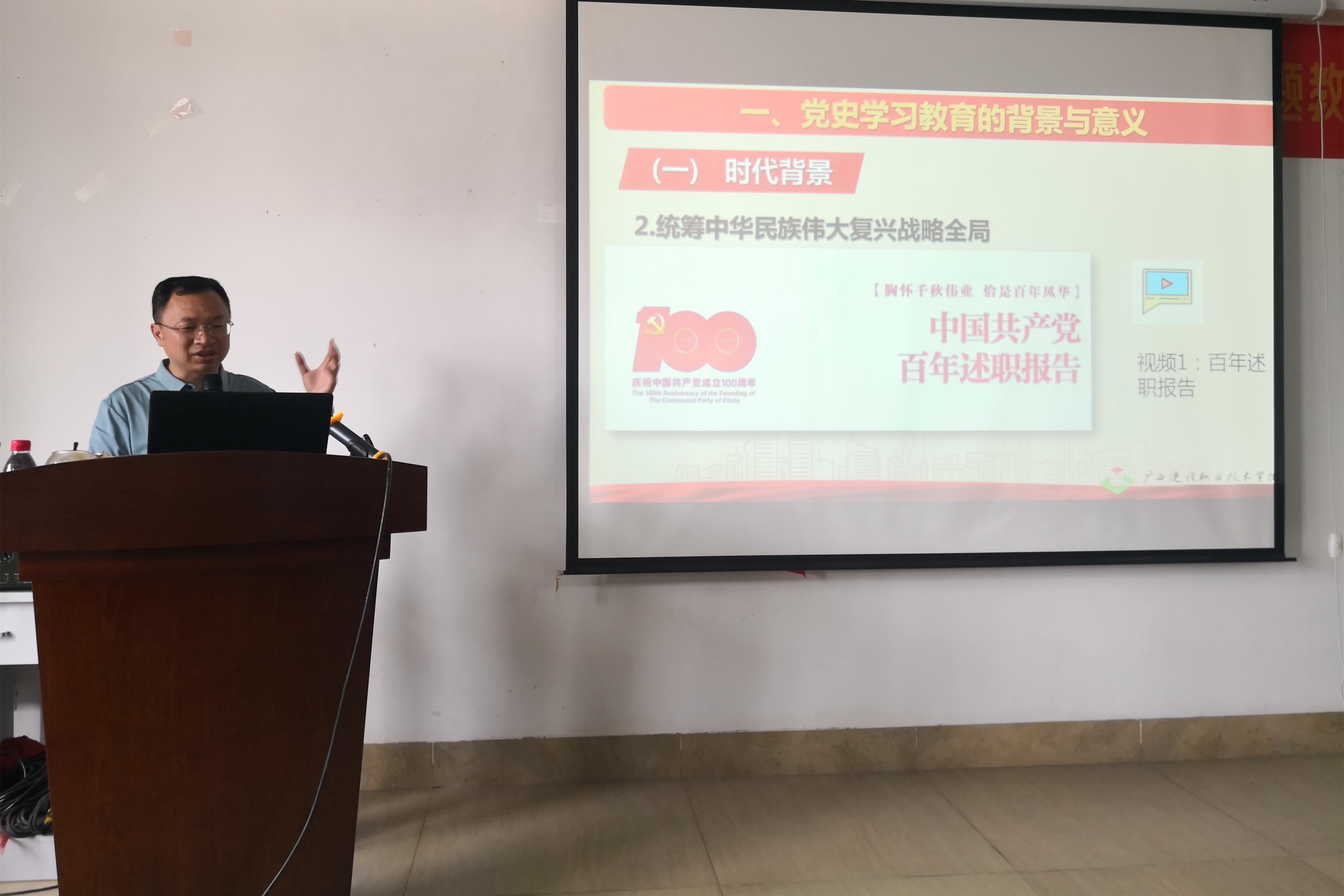 广西建院5月11日讯(艺术设计系 陈昕)为扎实推进党史学习教育入脑入心,5月11日下午,学院梁伟副院长在2教301教室,以《以党史学习教育 推动学校高质量发展》为主题,为艺术设计系党员带来一堂生动精彩的党课。直属...