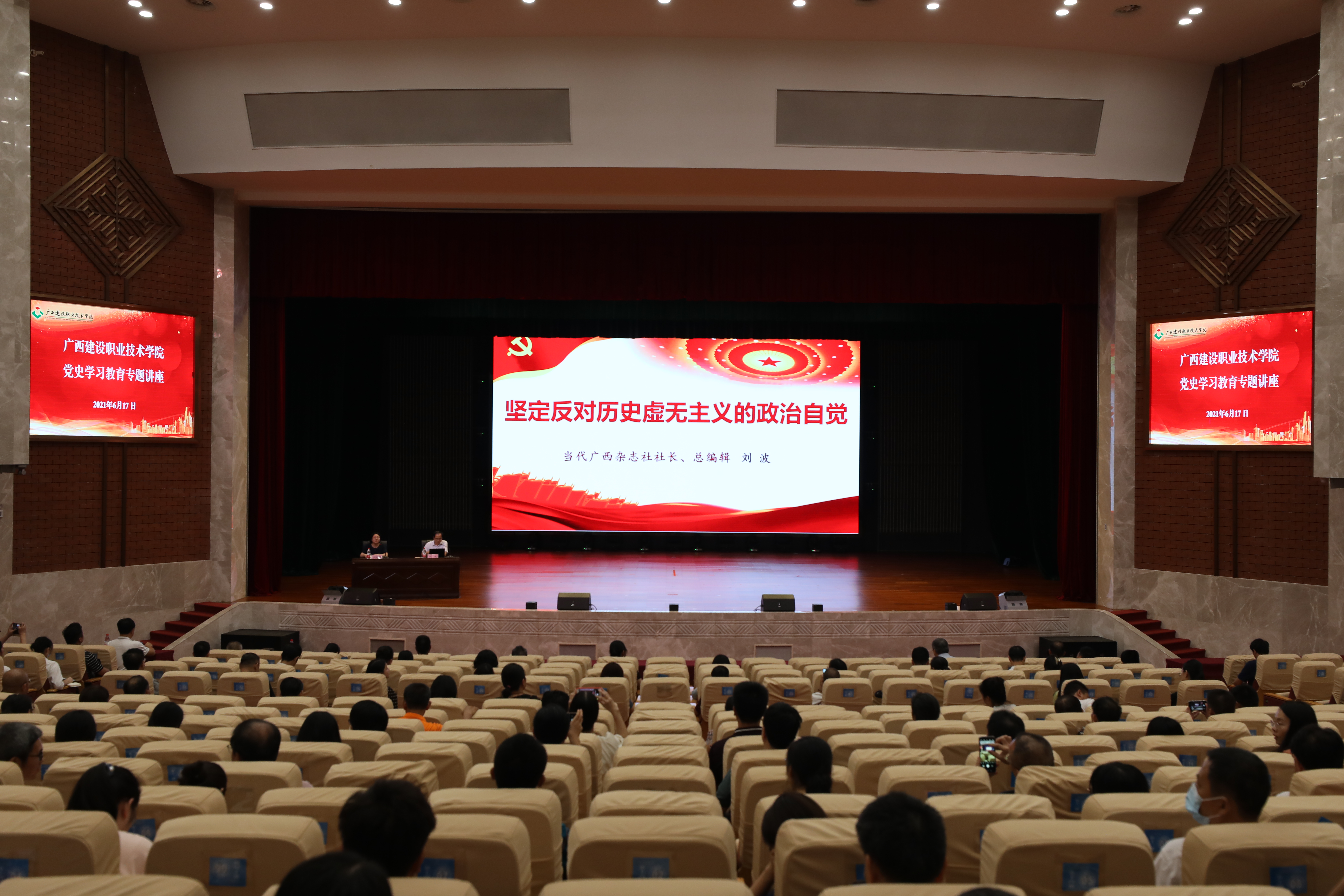 广西建院6月17日讯(党委宣传部 韦植巍)6月17日,自治区党史学习教育宣讲团成员,当代广西杂志社社长、总编辑刘波应邀来首页,在学校礼堂作党史学习教育专题讲座。讲座由学校党委书记刘晓红主持,全体教职工参加学习...