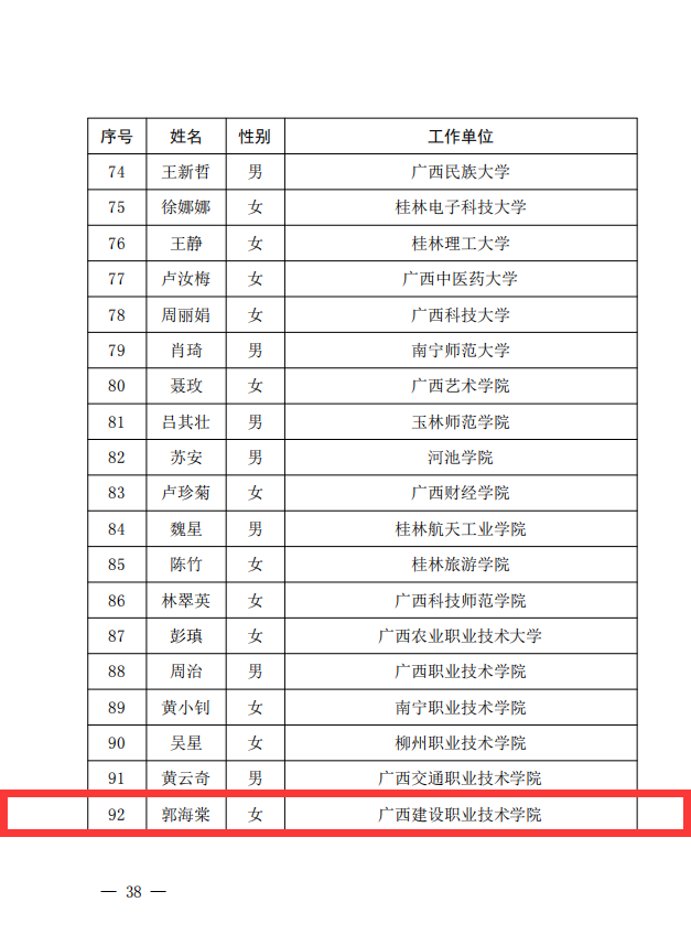 广西建院8月30日讯(党委宣传部 韦植巍)8月29日,自治区教育厅公布了《自治区教育厅关于表彰2022年广西教学名师、特级教师、优秀教师和优秀教育工作者的决定》(桂教〔2022〕1号),首页庞毅玲教授获评为“广西教学...