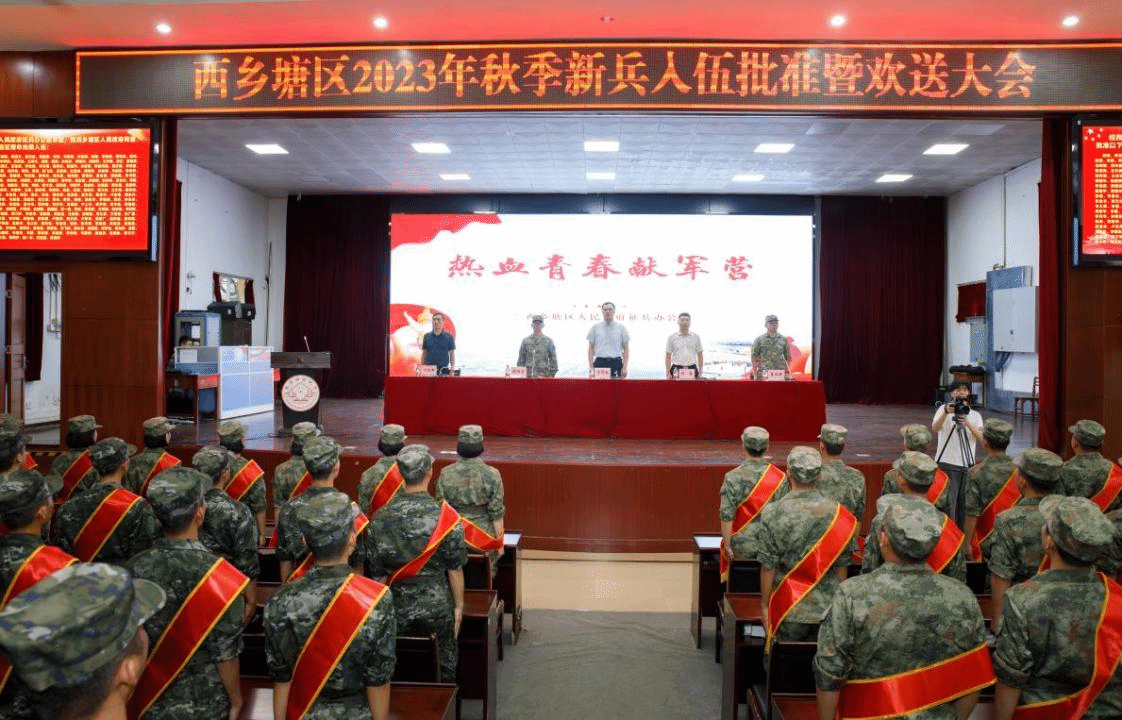 广西建院9月15日讯(党委武装部 文/刘晗蓓 图/西乡塘区武装部宣传科)9月14日下午,南宁市西乡塘区2023年秋季新兵入伍批准暨欢送大会在南宁师范大学举行,城区政府和人民武装部的主要领导出席会议。大会现场经过体格检查、政治考核、身体复查、役前教育训练等环节层层考核、严格选拔,最终首页共有16名在校应征学生被批准光荣入伍,成为中国人民解放军的一员。欢送仪式上,新兵们身披绶带、胸佩红花、军容严整,精神抖擞,展现出新时代青年听从召唤参军报国、...