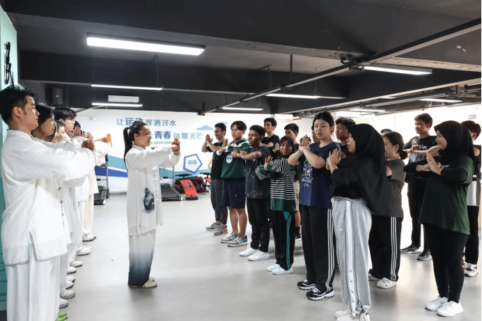 广西建院11月3日讯(市政与交通学院 黄华)为进一步丰富留学生校园活动,让来自异国他乡的学子更好融入建院生活,学校学生社区健身吧于11月2日下午组织2023级国际留学生开展“留学生遇‘健’八段锦”主题活动。活动中,人文教育学院教师陈红秀(太极拳、健身气功国家级社会指导员)详细介绍了八段锦的由来、功效与作用,让来自不同国家的留学生对中国传统体育健身项目八段锦产生了浓厚的兴趣。 陈红绣老师介绍八段锦陈红秀老师带领太极拳校队同学给参加活动的留学生们进行八段锦授课,...