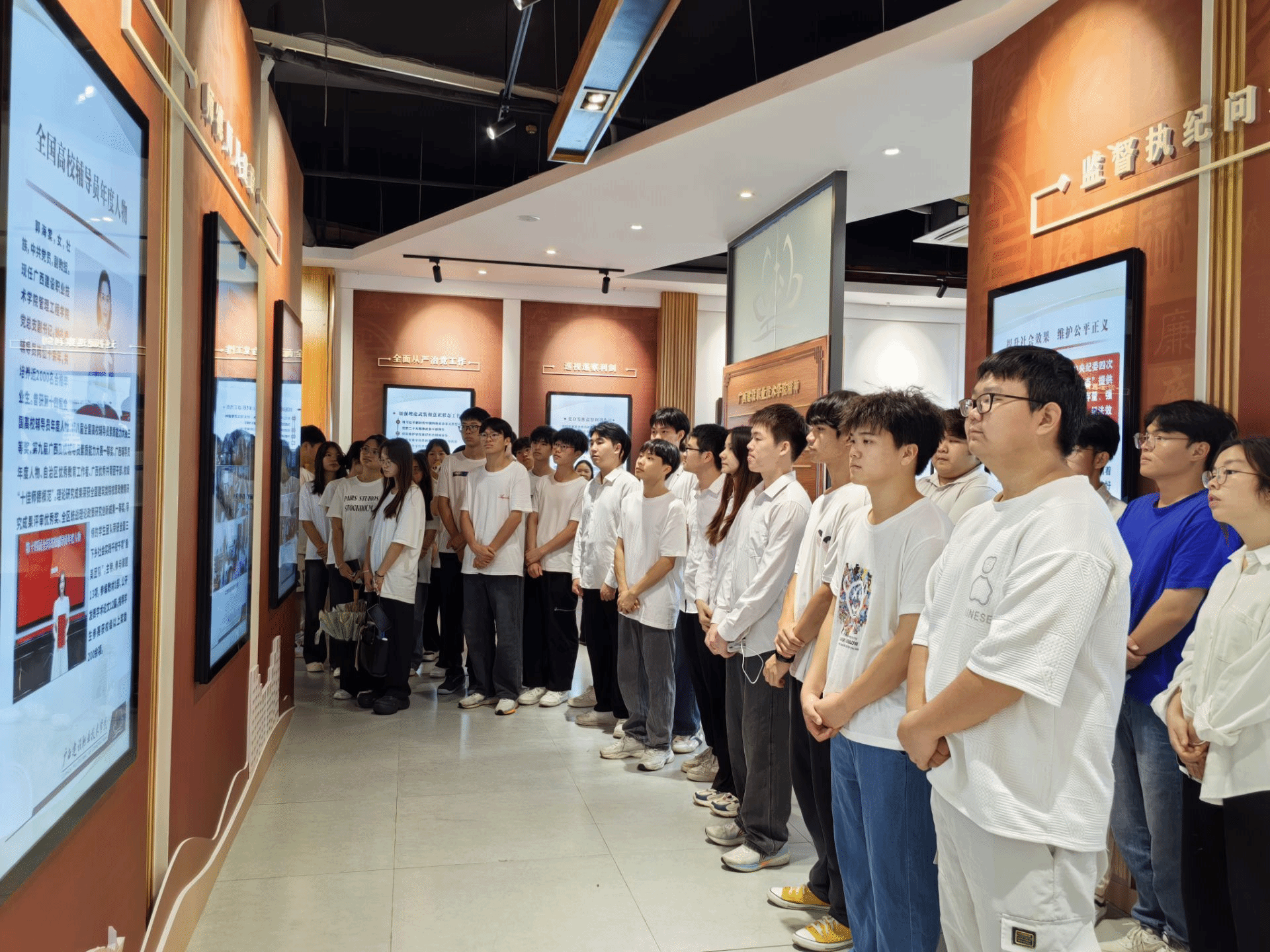 广西建院7月3日讯(土木工程学院 文/石明成 图/潘秀镇)7月2日,土木工程学院团总支组织第三期“青马工程”基础班暨团学骨干班全体学员前往学校廉政教育基地开展“青春挺膺,廉洁筑梦”廉洁教育主题团日活动,共110名师生参与活动。参观学校廉政教育基地在讲解员的引导下,师生们依次参观主题展厅六大板块内容学习,通过墙报、标语、视频等媒介的展示,一个个鲜活真实的案例、一张张生动详实的图片、一行行触目惊心的文字、一张张后悔莫及的面容,...