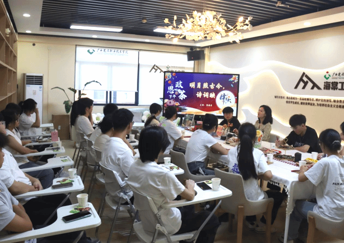 广西建院9月17日讯(管理工程学院黄欣欣 梁甜甜)品韵中秋,情系家国。9月17日,管理工程学院在海棠工作室举办了以“明月照古今,诗词映中秋——诗词里的家国情怀”为主题的思政下午茶活动。学院党总支副书记郭海棠老师与25位同学面对面交流。活动上,主讲人郭海棠老师提出了“我们为什么过中秋?你能完整背出一首带‘月’字的诗词吗?中秋诗词给我们传递了哪些力量?家国情怀是什么样的情怀?怎样弘扬家国情怀?”论题。围绕论题,...
