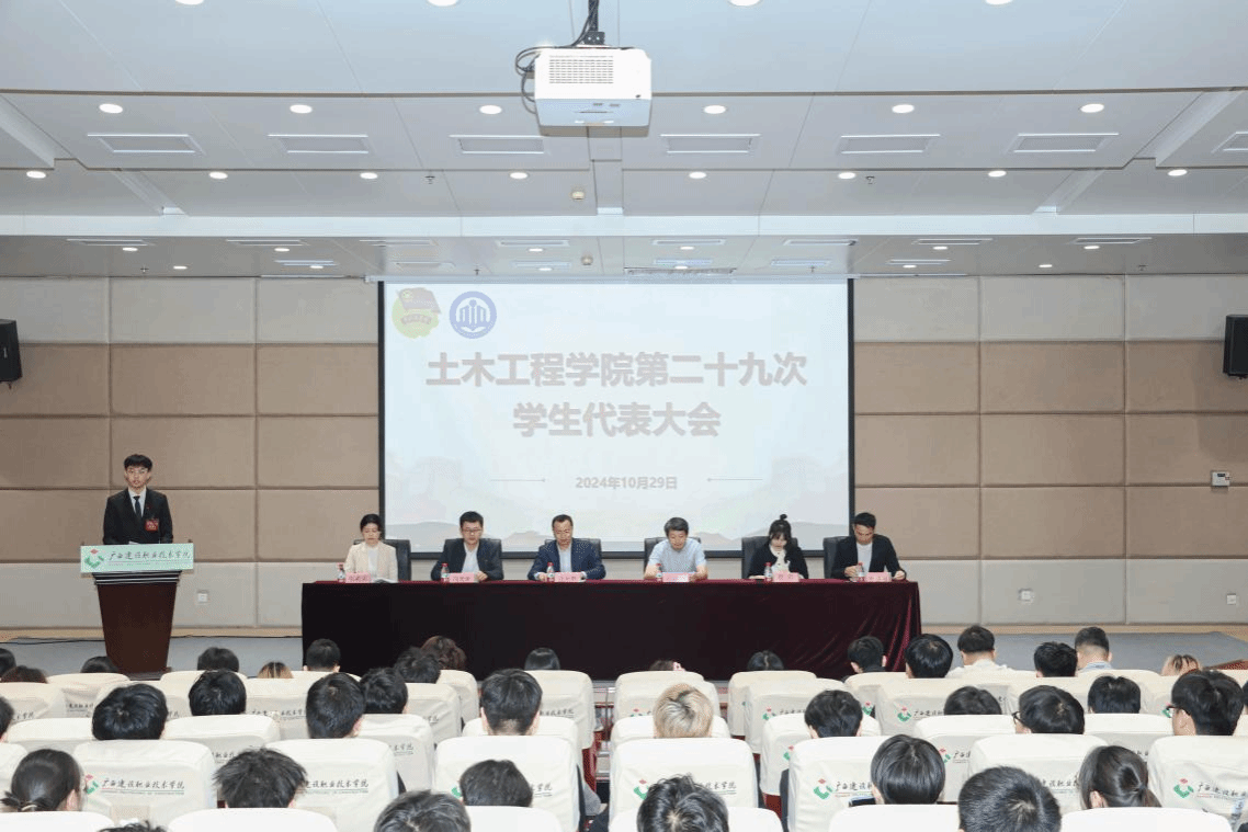 广西建院10月30日讯(土木工程学院 文/石明成 图/朱运基 张伟)10月29日,土木工程学院第二十九次学生代表大会在四教一楼报告厅召开,校团委书记兼党委学生工作部副部长曾小贵,土木工程学院党总支书记孔祥刚、团总支书记冯光帆、全体辅导员,学校各学生组织代表以及大会正式代表152人参加会议。预备会议上,土木工程学院第二十九次学生代表听取并审议了大会筹备工作报告、代表资格审查报告、主席团候选人名单以及正式会议议程。大会现场 ...