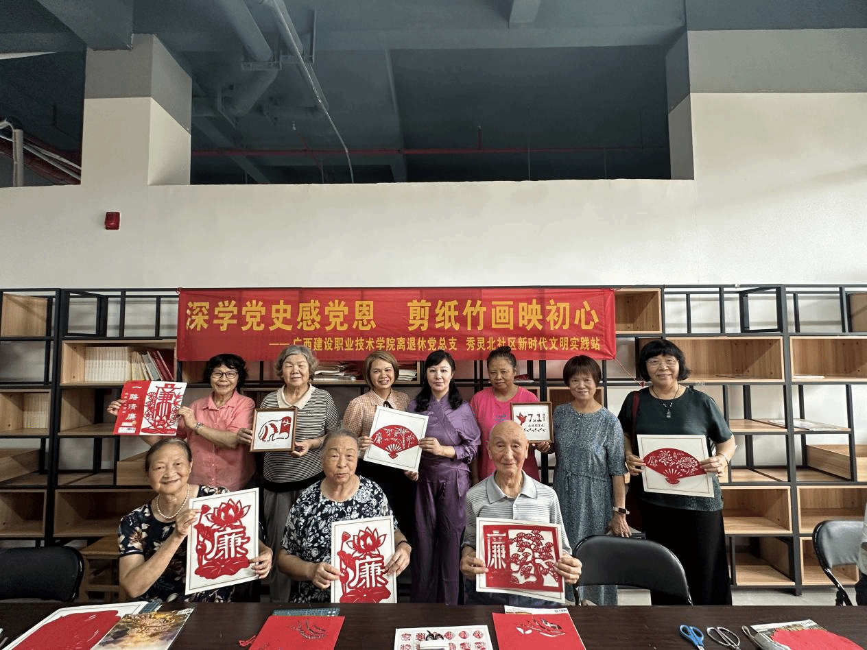 6月27日,首页离退休党总支携手秀灵北社区居委会,组织30余名退休党员职工和居民,开展了一场别开生面的“深学党史感党恩·剪纸竹画映初心”主题党日活动。活动伊始,党员们在社区书记陈秀蓉带领下重温入党誓词,表达忠诚信仰。现场为“光荣在党50年”老党员代表颁发了纪念章,传递组织关怀。广西工业职业技术学院退休教师李燕带领大家重温了百年党史红色记忆。活动巧妙融合传统文化与廉洁教育。工作人员介绍了竹编、剪纸非遗文化的历史与价值。...