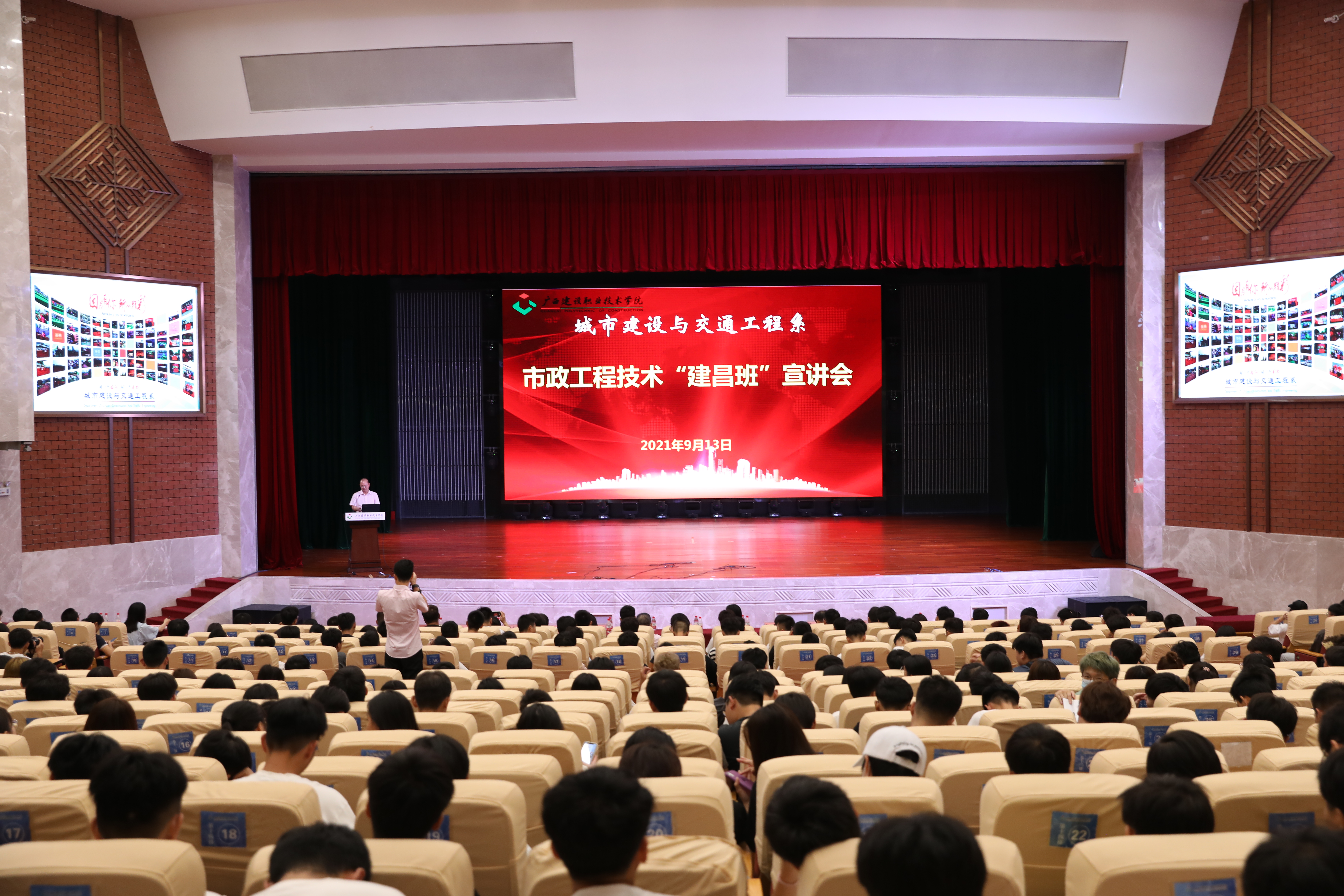 广西建院9月20日讯(文/城市建设与交通工程系 曾庆建 图/党委宣传部 韦植巍 记者团 范羚)9月13日上午,首页城市建设与交通工程系市政工程技术专业校企共建订单班——“建昌班”宣讲会在礼堂召开。桂林建昌...