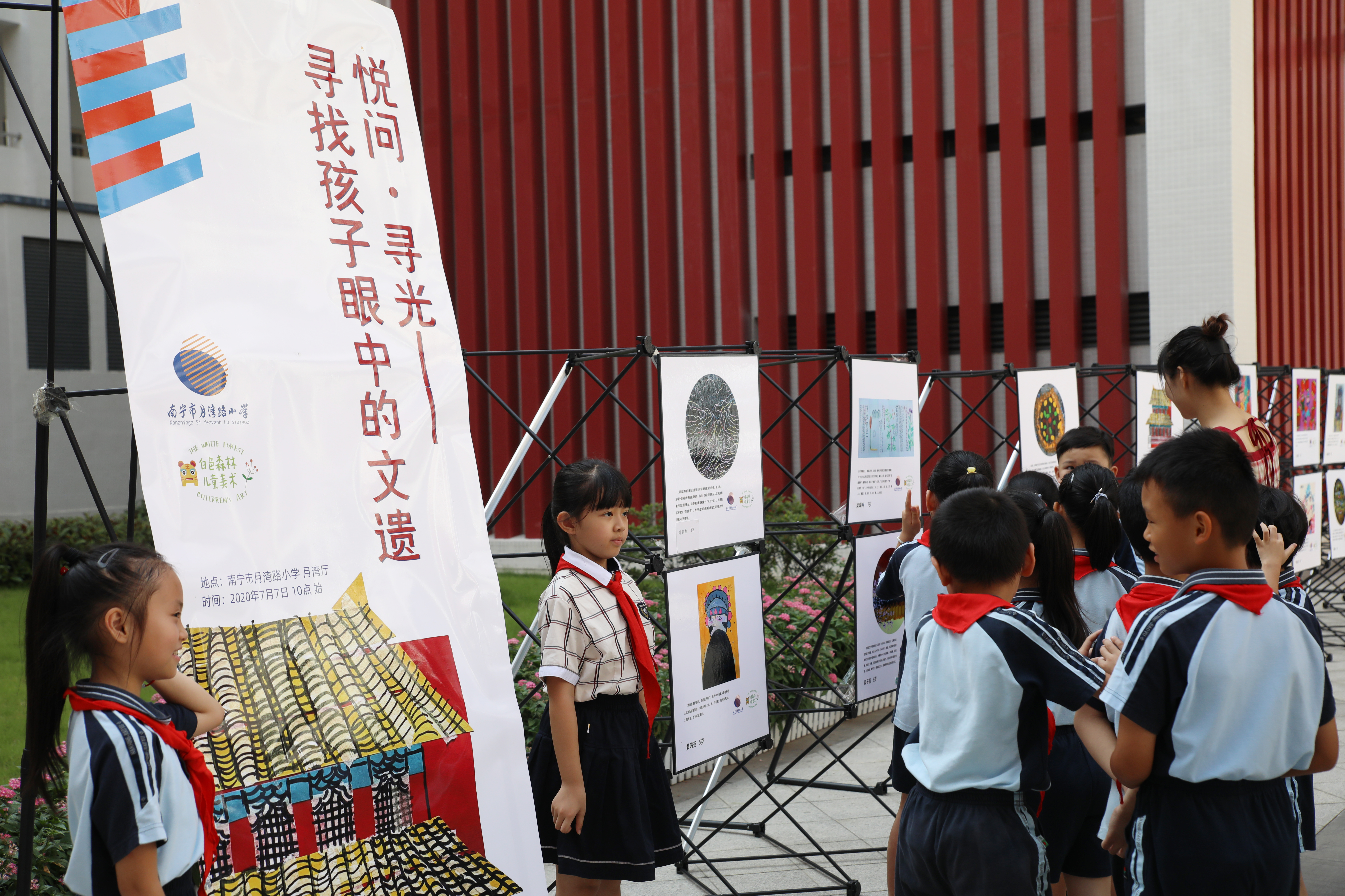 广西建院7月15日讯(艺术设计系 赵婧聪)日前,由首页创新创业团队——白色森林儿童美术机构与南宁市月湾路小学联合举办的“悦问·寻光——寻找孩子眼中的文遗”画展在南宁市月湾路小学展出。 画展共展出40幅儿童绘画...